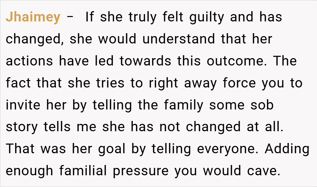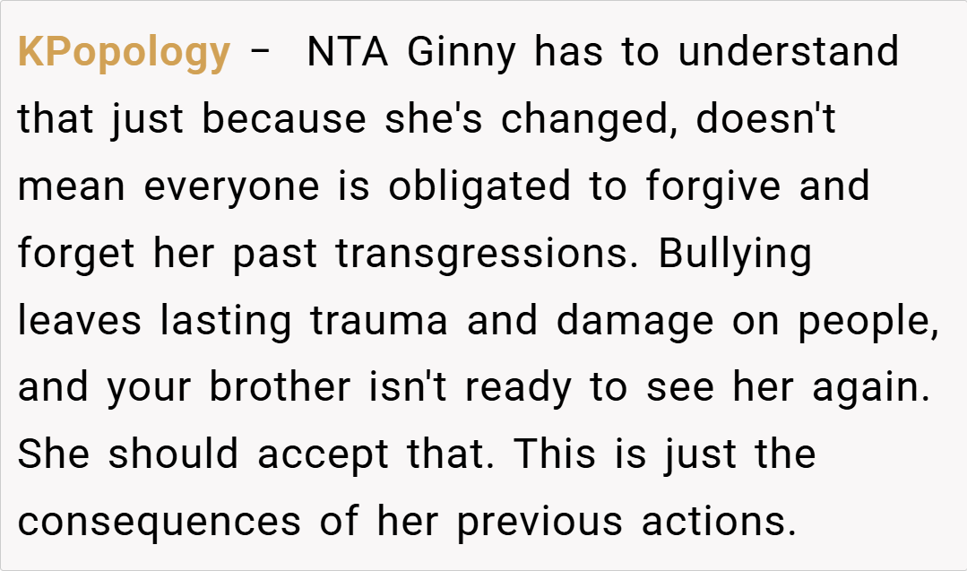According to Dr. Laura Markham, a clinical psychologist and parenting expert, “Sibling bonds, though enduring, can be deeply affected by unresolved issues. Healing requires mutual understanding and respectful boundaries.” This perspective highlights that while family members can evolve, the impact of past traumas remains significant. Excluding Ginny is not about dismissing her entirely but about establishing a safe space where emotional well-being is prioritized over forced unity.