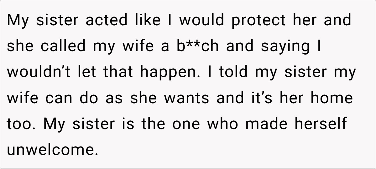 The narrative unfolds in a setting where a safe haven becomes the stage for constant reminders about responsibilities and respect. With his wife at his side, the OP has repeatedly clarified that hosting his sister and her children isn’t an open-ended favor but a temporary solution. However, relentless demands, disparaging comments, and boundary-crossing behavior have led to a breaking point, igniting a conflict that now threatens to upend the home’s harmony.