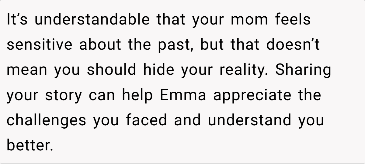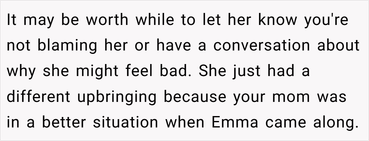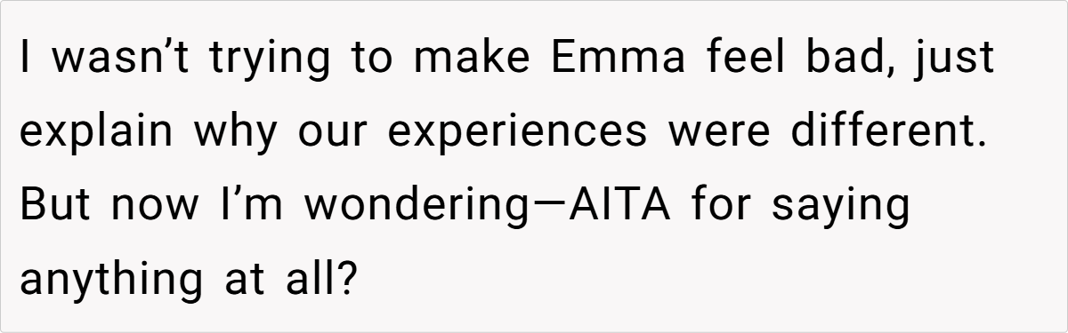 In OP’s case, telling Emma the truth was not about guilt-tripping—it was about honest communication. Emma deserved to know why OP’s experience was different.