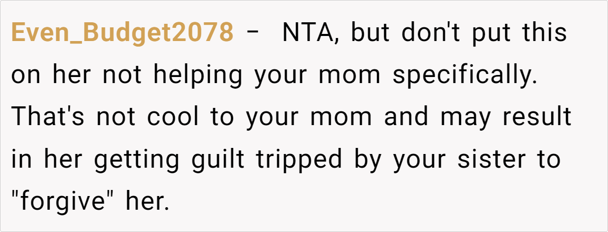 ‘AITA for telling my sister there were consequences to not helping out our mom?’