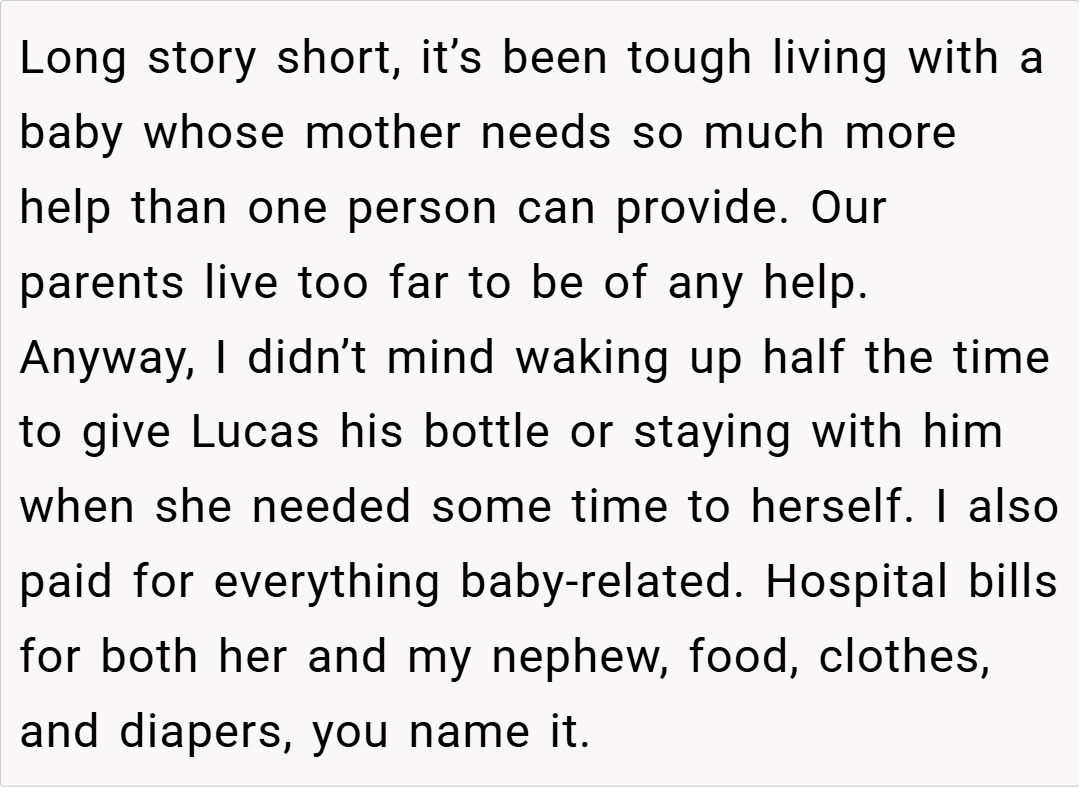 This story is a vivid reminder that while family support is invaluable, it shouldn’t come at the expense of your own well-being. Our poster’s decision to draw a line by saying she won’t “play baby daddy” is not about a lack of love—it’s about maintaining healthy boundaries in a demanding situation. Balancing generosity with self-care is crucial, and sometimes, tough conversations are necessary to prevent long-term resentment.