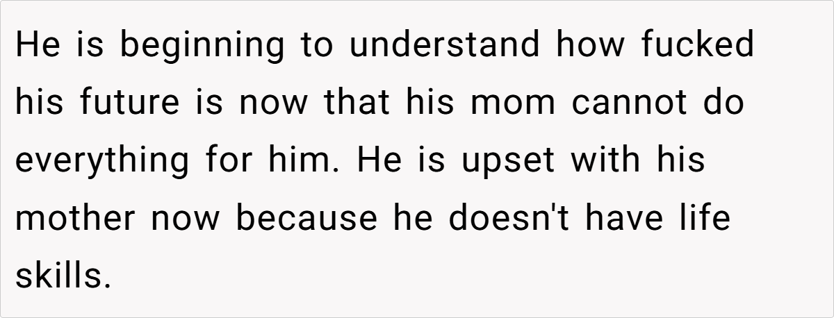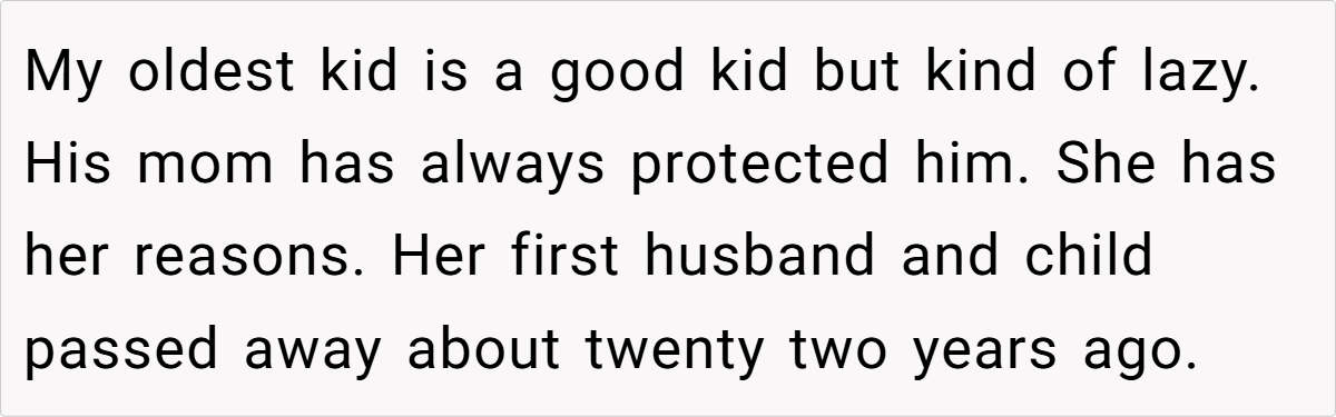 Growing up in a home where every mistake was cushioned can sometimes leave you unprepared for the real world. In this story, a 40-year-old parent recounts the painful journey of watching his oldest son, once sheltered and indulged by his overprotective mother, struggle with the responsibilities of adult life.