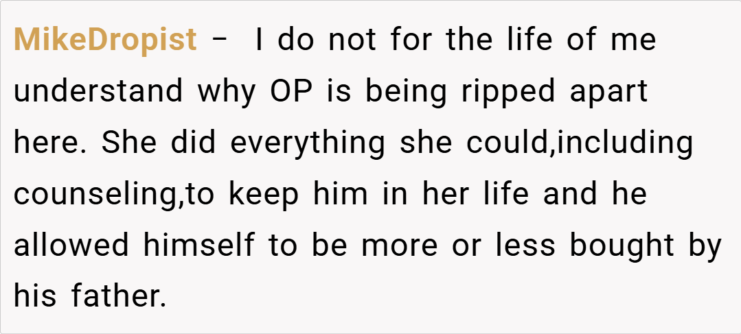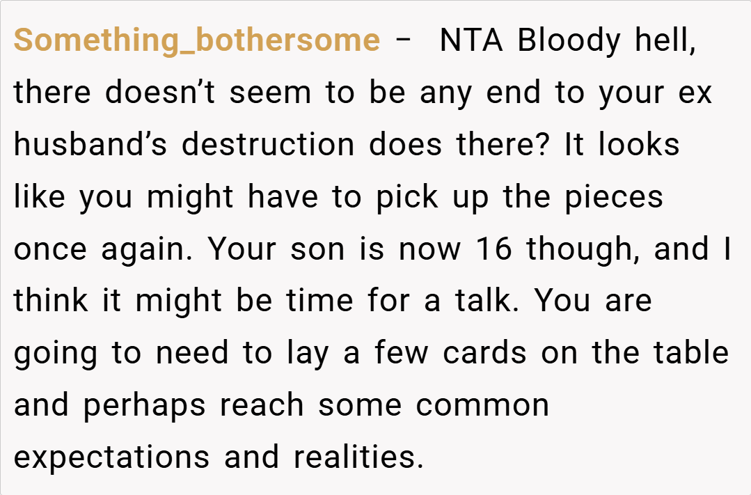 They emphasize that her son’s previous decision to live with his father, coupled with the fact that he had long expected not to return, justifies her stance. While a few voices advocate for more empathetic handling—suggesting family counseling or a more gradual transition—the dominant sentiment is that her decision is both practical and understandable under the circumstances.