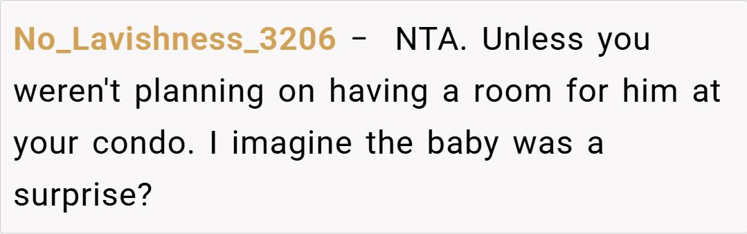 Overall, the Reddit community largely supports the mother’s decision. Many commenters agree that, given her current living situation and priorities with a new baby and work, she has every right to reserve her limited space for her immediate family.