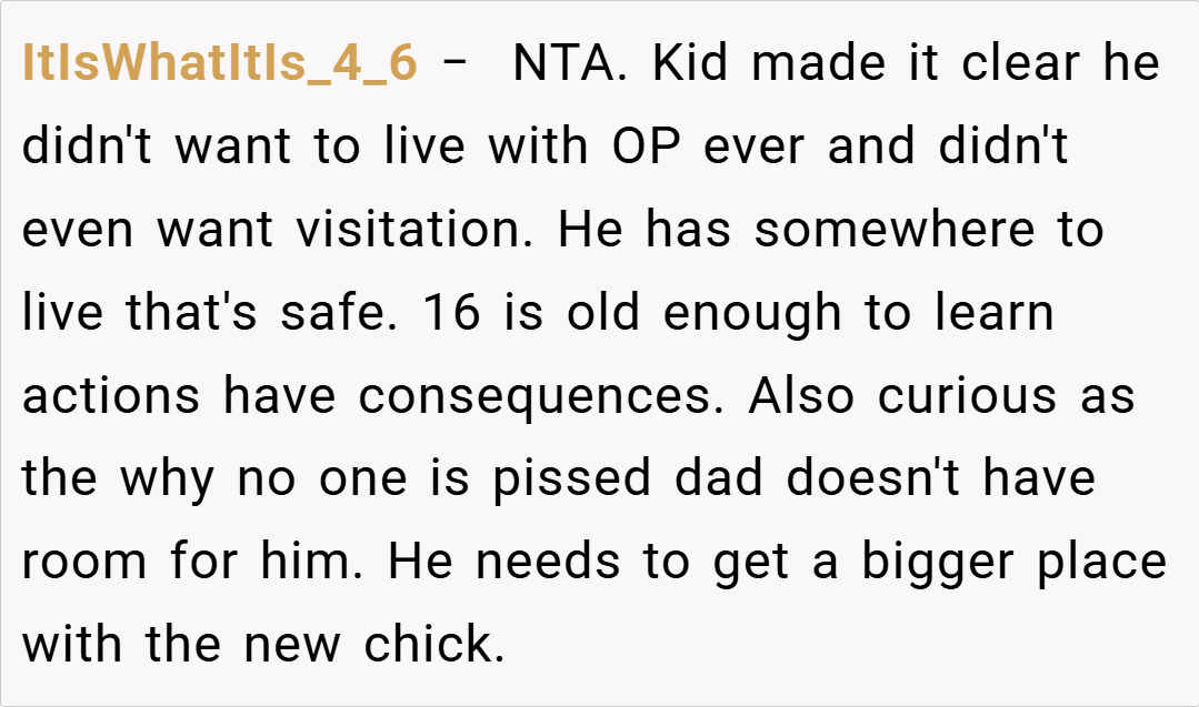 At the core of this issue lies the challenge of balancing evolving family responsibilities with limited resources. While it’s undeniably painful for a 16-year-old to hear that there isn’t room for him at home, the mother’s decision reflects the harsh realities of downsizing and prioritizing a growing nuclear family.
