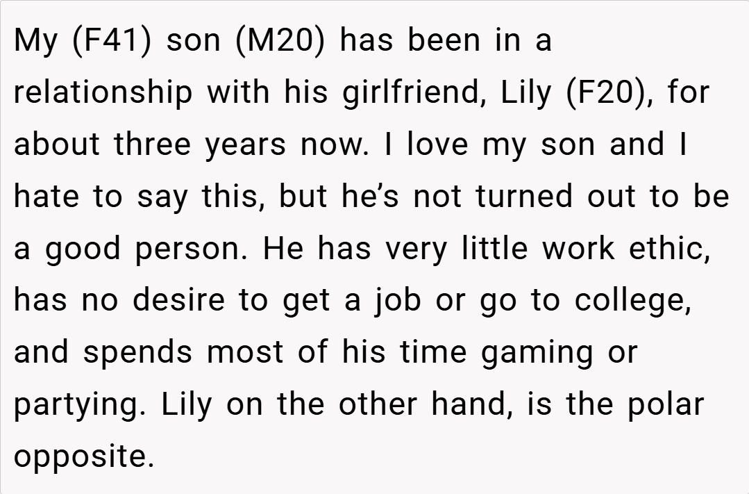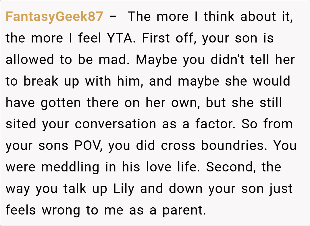 ‘AITA for telling my son’s girlfriend to break up with him?’