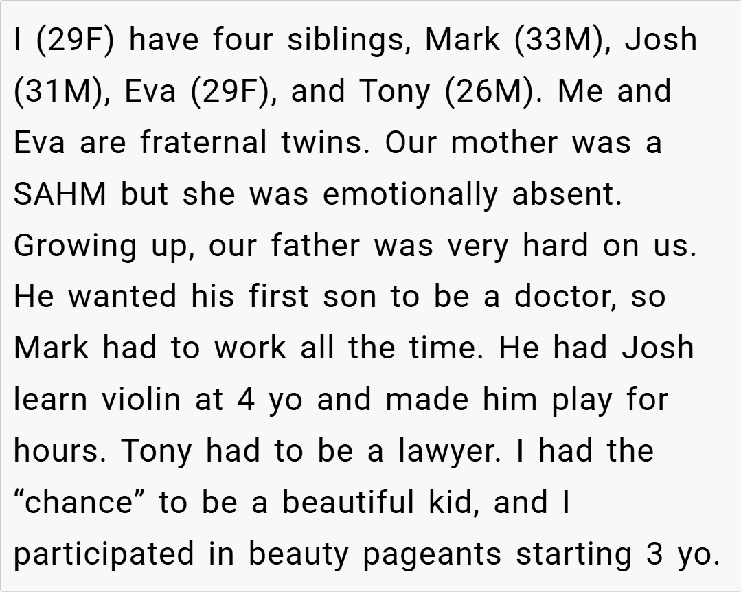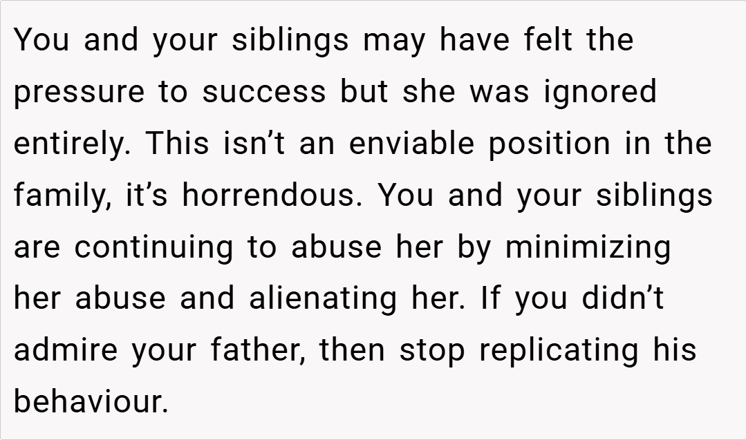 The Reddit community’s reactions are as layered and nuanced as the story itself. Some commenters point out that the twin sister’s behavior—her dismissal of the hardships her siblings endured—has deepened the family rift. Others note that the OP’s harsh words, while emotionally charged, stem from long-held resentment and the overwhelming pressure of a strict, uneven upbringing.