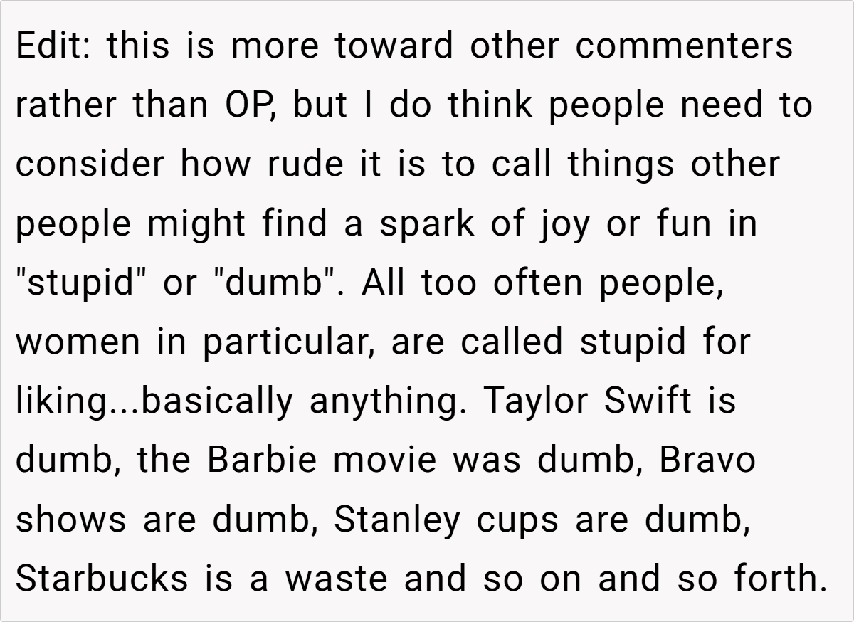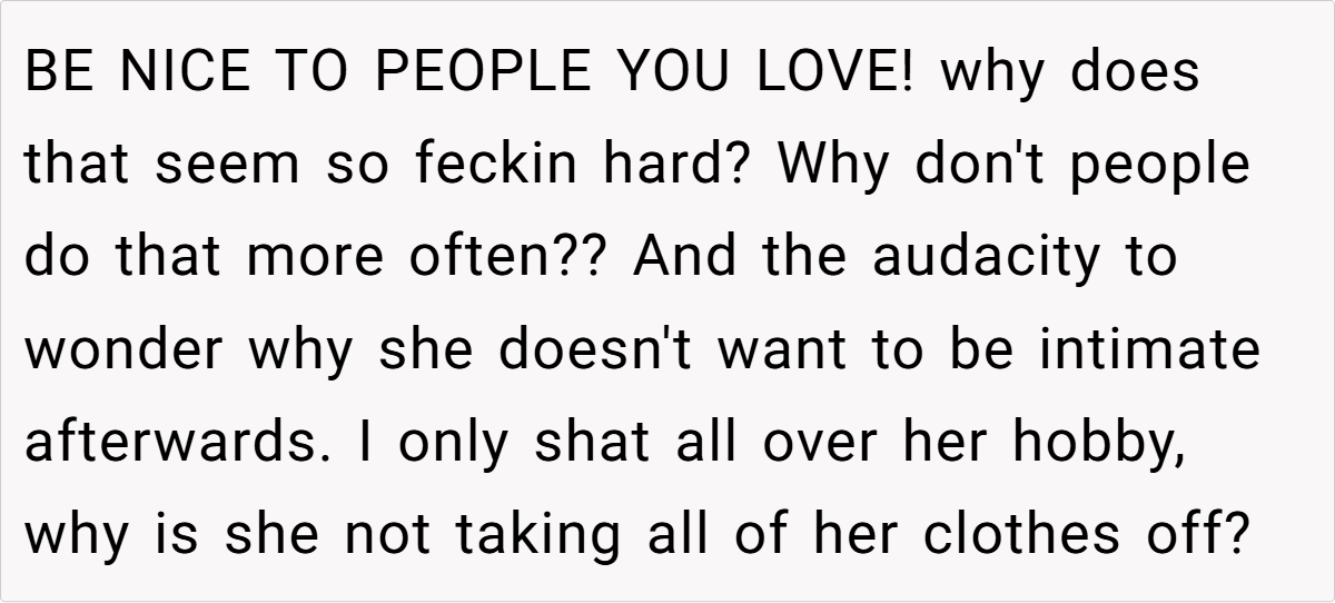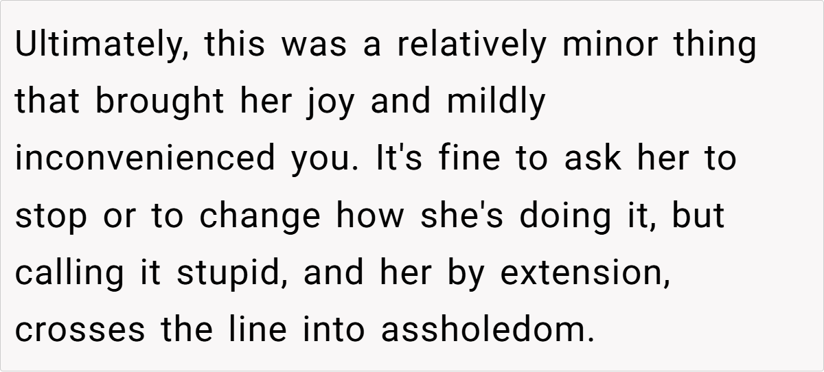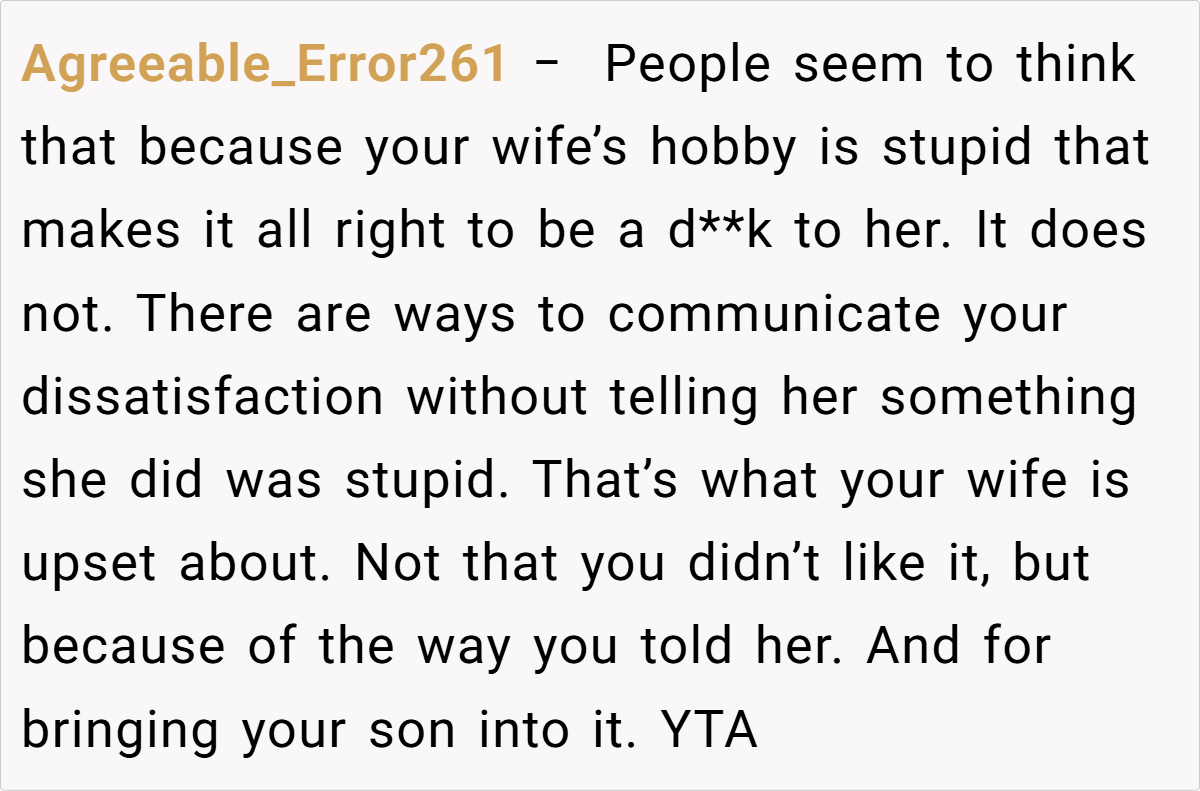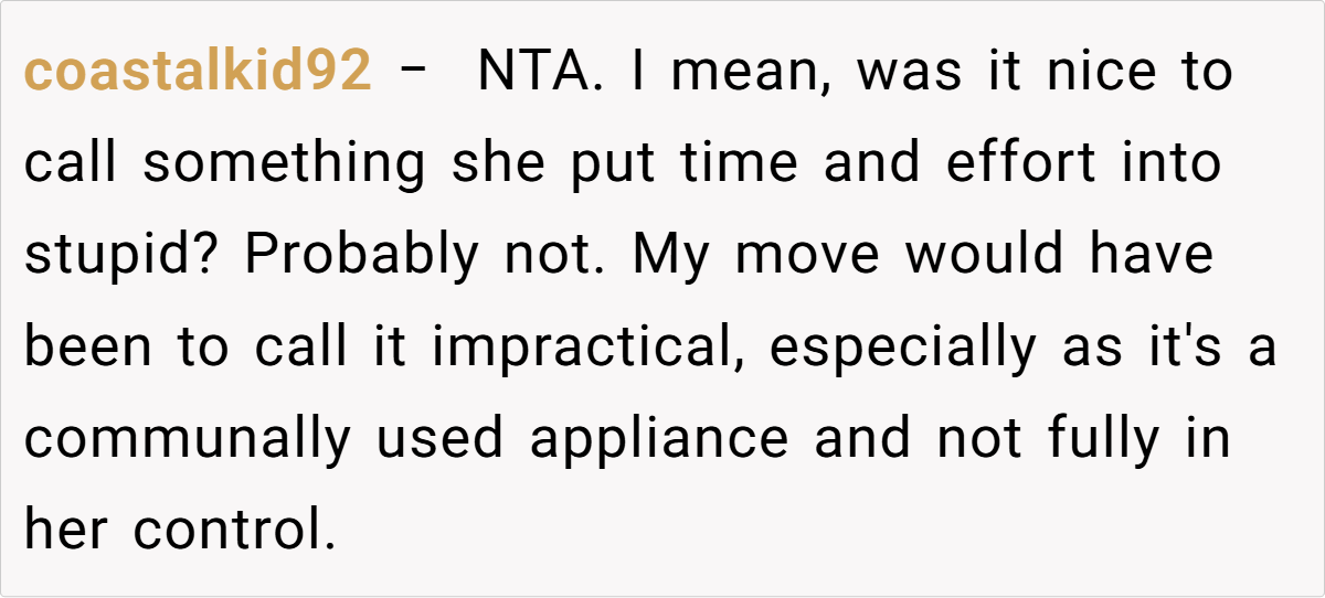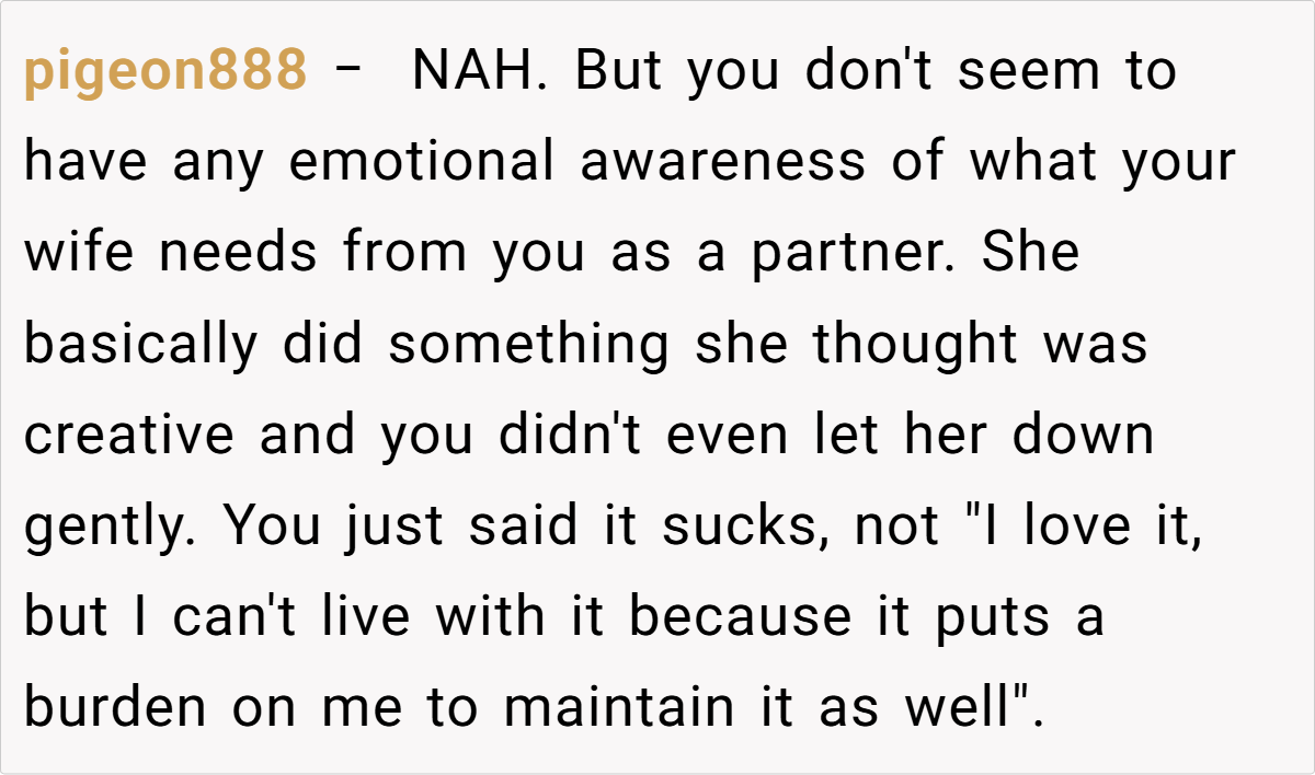 The community’s responses ranged from light-hearted critiques to more pointed advice, with many urging the husband to reconsider his choice of words and embrace a more empathetic tone. While some found his frustration understandable given the practical inconveniences, others felt that dismissing his wife’s creative outlet was a bit harsh. These diverse opinions highlight that, ultimately, the issue isn’t just about a decorated fridge—it’s about finding common ground in a shared living space.