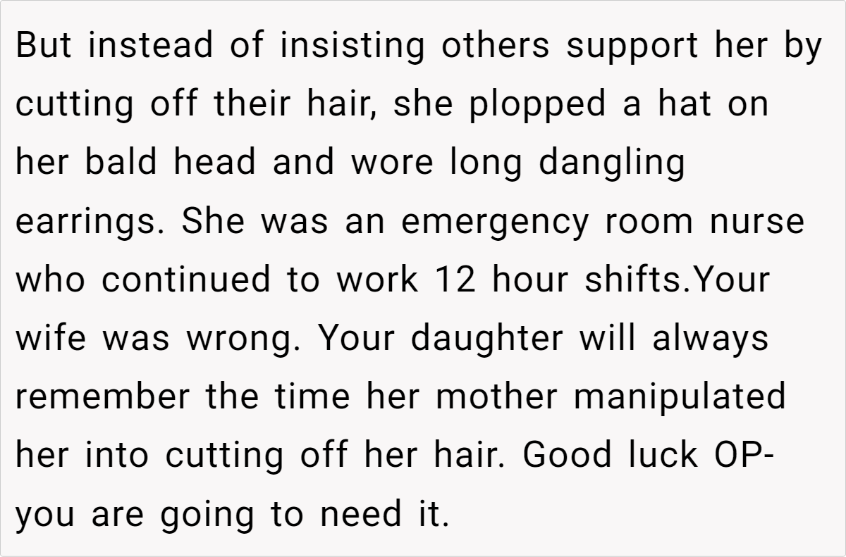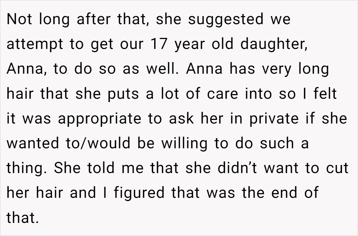 In a recent scenario, a father recounted an incident where his wife, currently battling cancer, pressured their 17-year-old daughter, Anna, into shaving her long, cherished hair. Despite Anna’s initial reluctance, she acquiesced after her mother implied that not doing so would be seen as a lack of support. This situation highlights the delicate balance between expressing solidarity and respecting individual choices, especially when emotional vulnerabilities are at play.