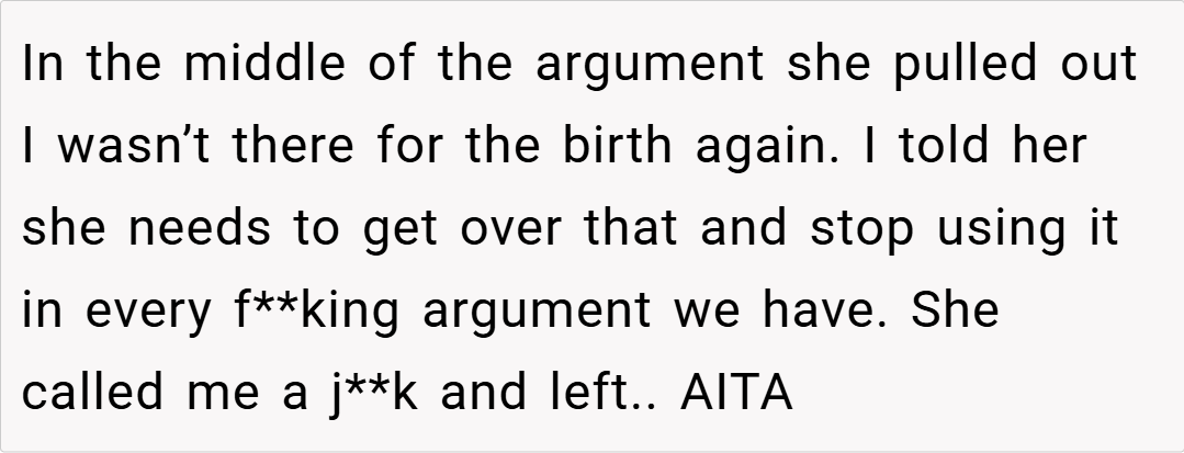 ‘ AITA for telling my wife that she needs to get over me missing the birth of our daughter?’