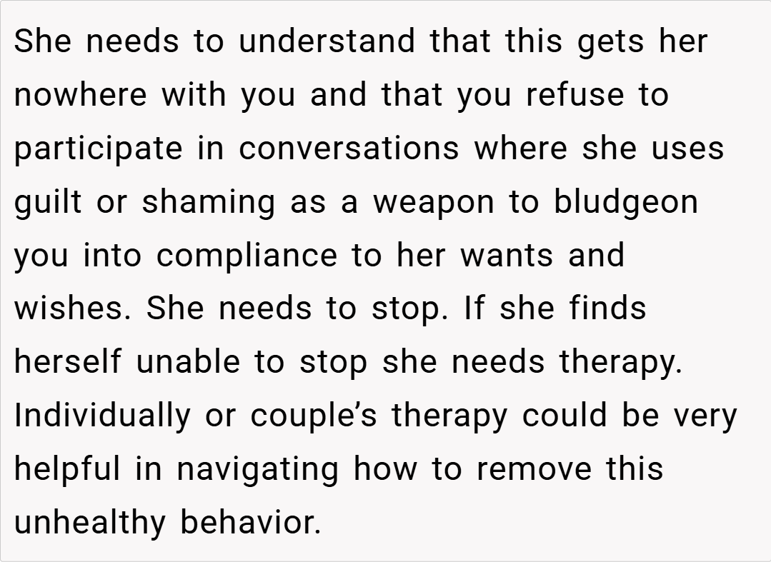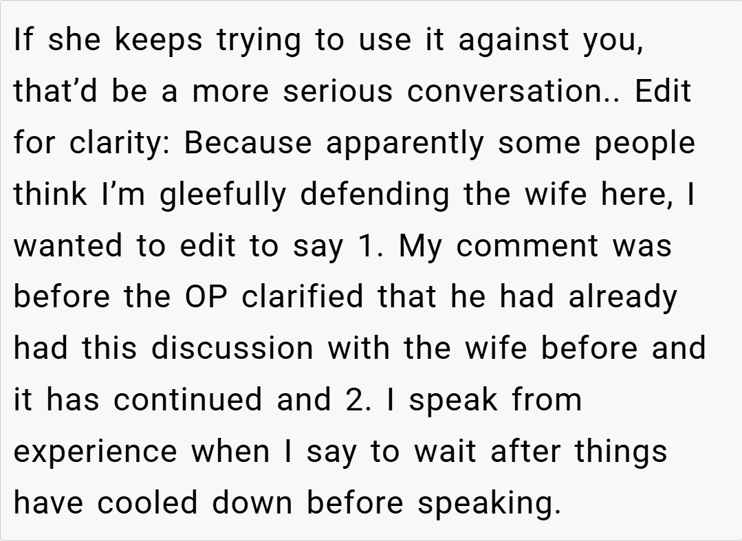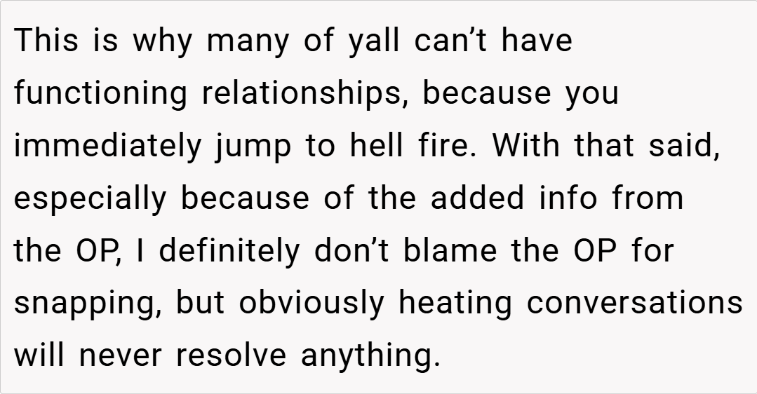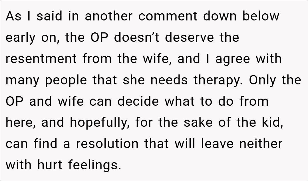 Another group shared personal experiences, with one commenter stating, “I understand how painful it can be to keep rehashing old wounds. Your request for her to ‘get over it’ isn’t about dismissing her feelings—it’s about wanting both of you to heal and focus on the future, especially for the sake of your child.”