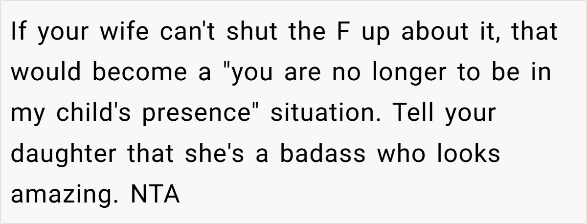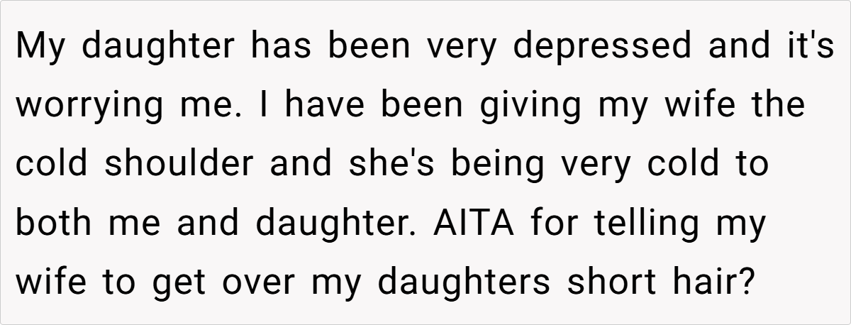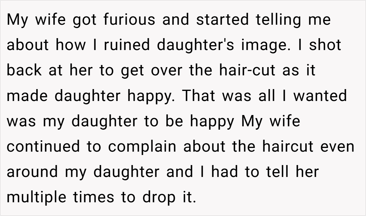 Instead of celebrating his daughter’s newfound confidence, his wife expressed shock and disapproval, leading to a heated exchange where he essentially told her to “get over it.” This episode not only fueled tension between him and his wife but also started to affect his daughter’s mood, leaving the family wondering if celebrating individual happiness was worth the cost of familial peace.