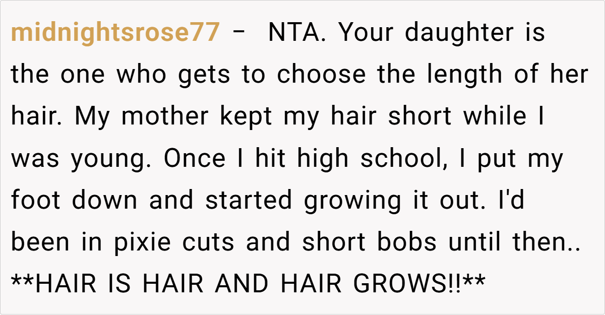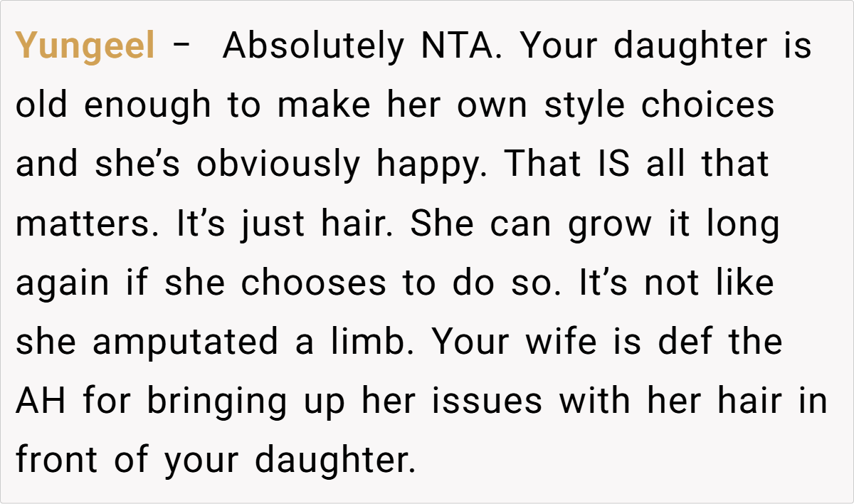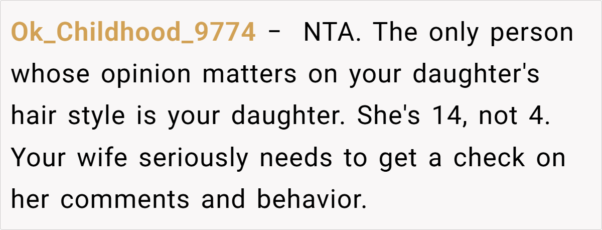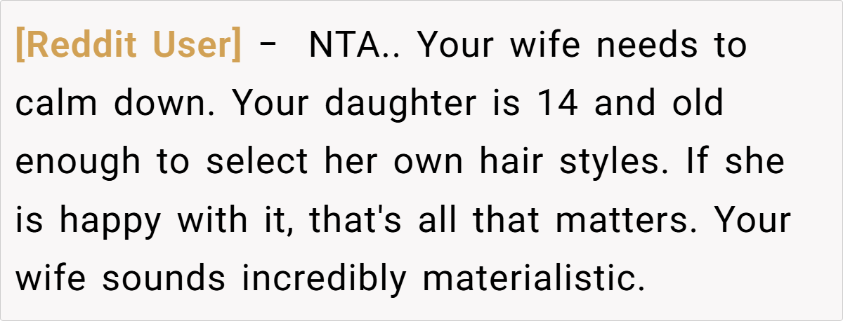 The Reddit community has been divided on this issue. Many users empathize with the father’s desire to let his daughter express herself, applauding him for supporting her decision to choose a look that makes her happy. They argue that personal style is a form of self-expression and that a teen’s choice should be celebrated.