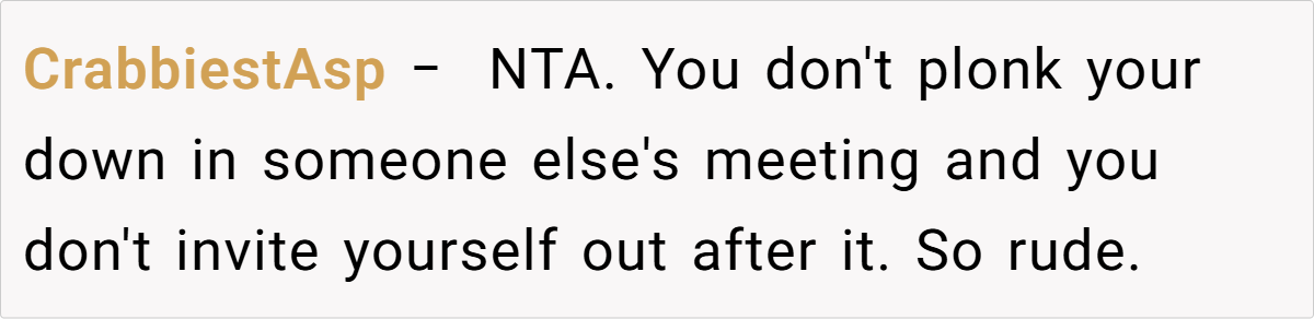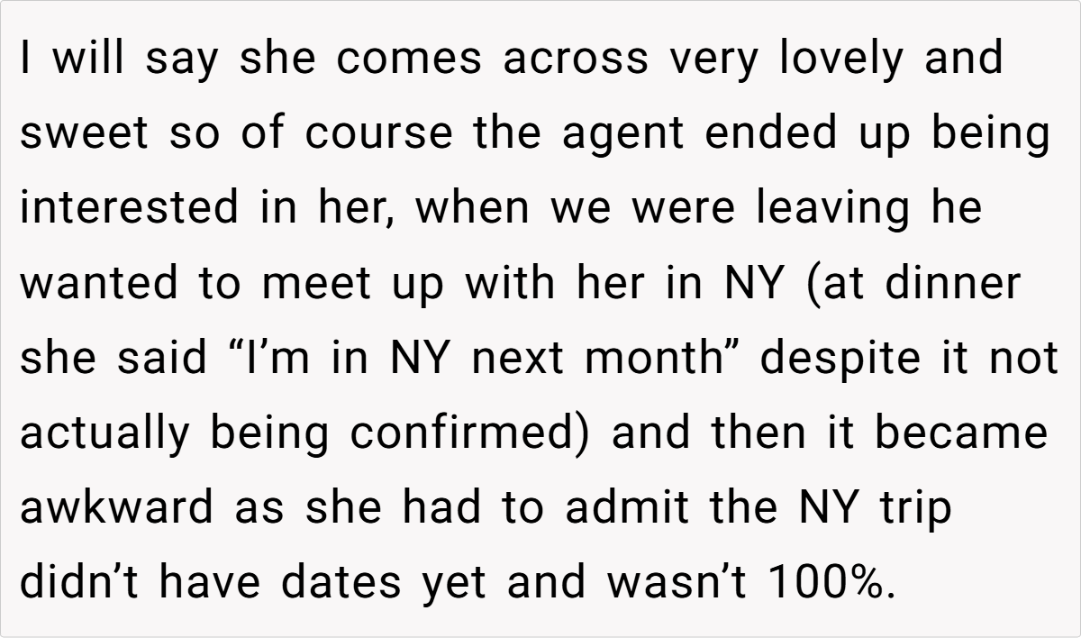 Her eagerness to insert herself into a high-stakes professional encounter, along with exaggerated claims about her own work, left OP questioning her motives. Was this just innocent enthusiasm or a calculated move to benefit from his network? The tension between personal loyalty and professional boundaries now lies at the heart of their relationship, sparking a debate about authenticity, integrity, and the true cost of ambition.
