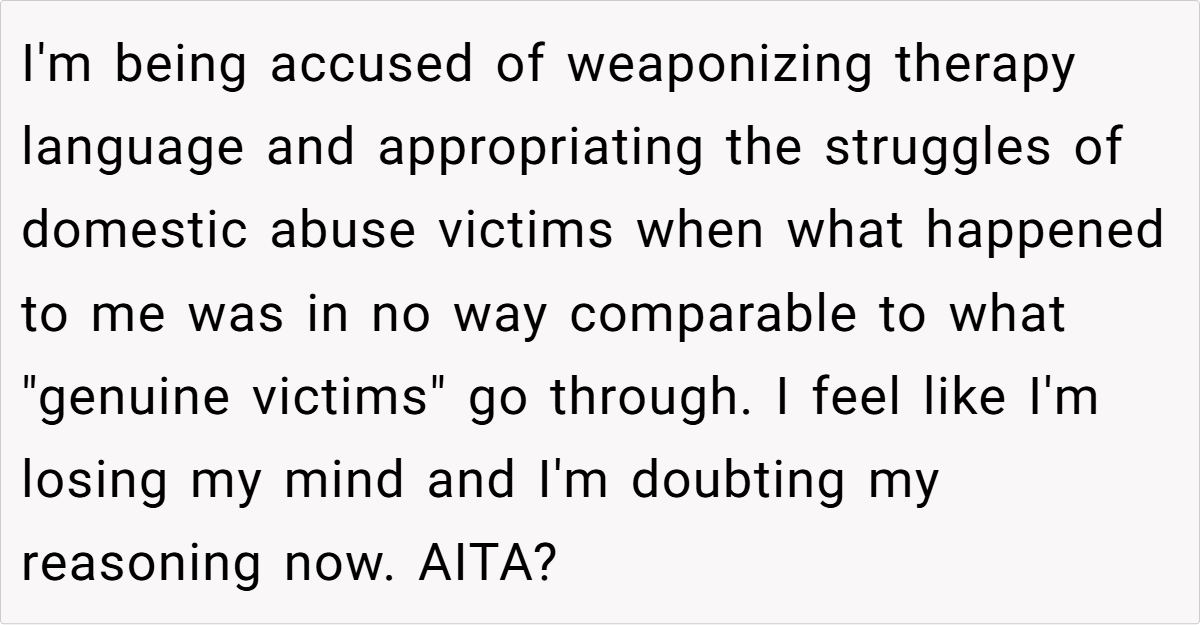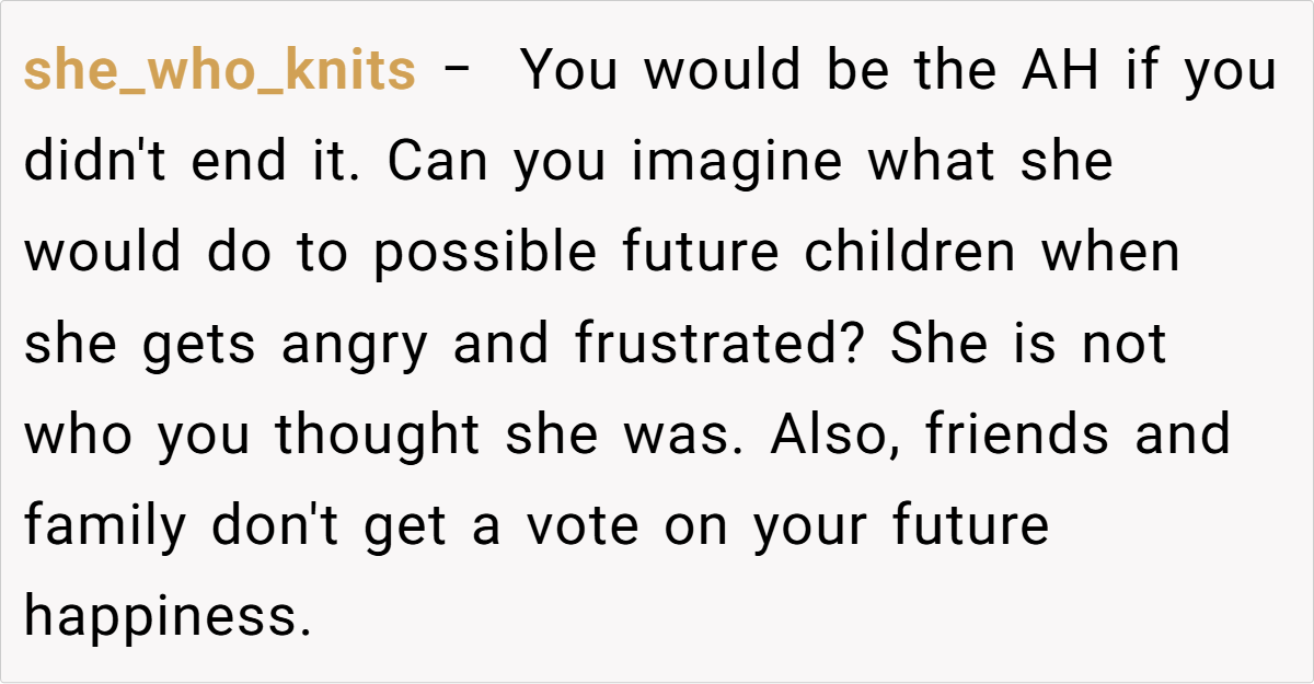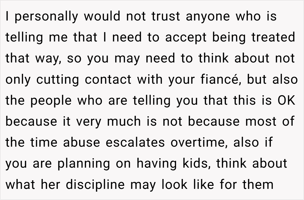Ultimately, this isn’t about punishing your fiancée or misusing therapy language; it’s about protecting your emotional well-being and re-evaluating what you require from a lifelong partner. Even if her actions occurred in a moment of anger, a single act of physical aggression can have far-reaching consequences for trust and intimacy.