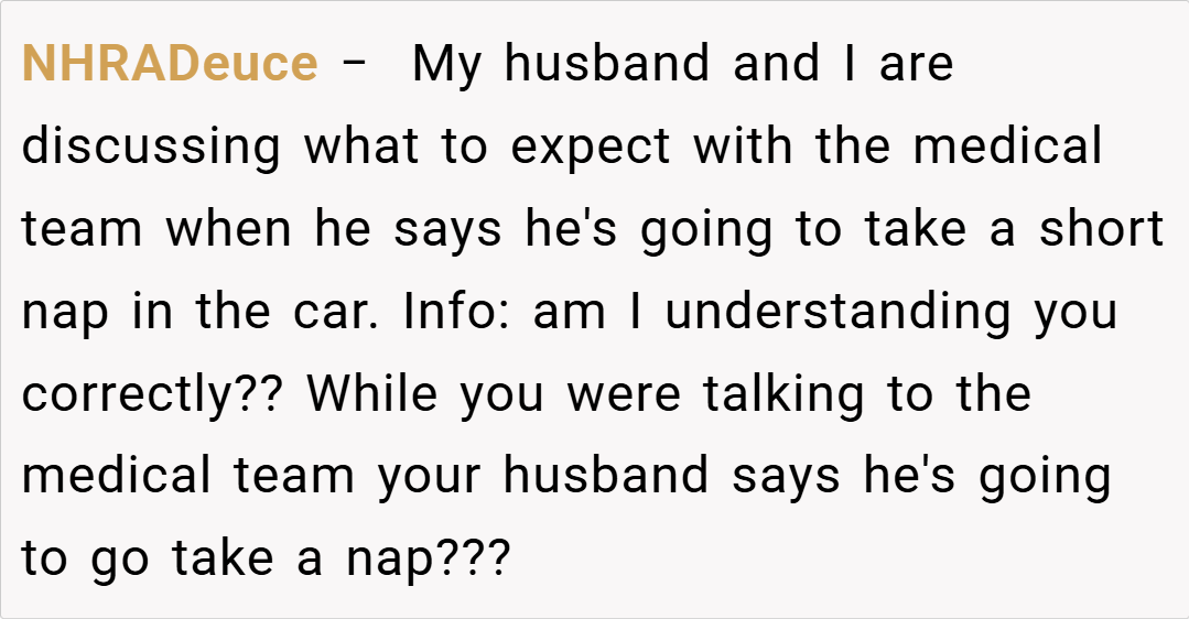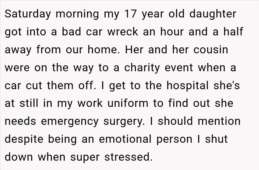 When a crisis strikes, emotions can run so high that even a small lapse in support feels catastrophic. Our OP, a 26-year-old woman, found herself at the hospital in the midst of a family emergency. Her 17-year-old daughter was involved in a serious car wreck and needed emergency surgery. In a moment when every second felt precious, her boyfriend—whose presence she desperately needed—opted to take a short nap in the car to ease his aching back.