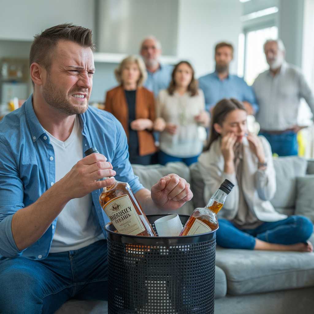 When his brother began pouring shots for everyone, including ignoring his request to stop, the user became upset. His daughter also had a panic attack from the smell of the alcohol, which made the situation worse. In a moment of frustration, the user threw the whiskey bottle away.