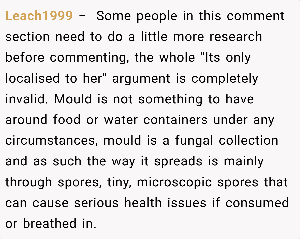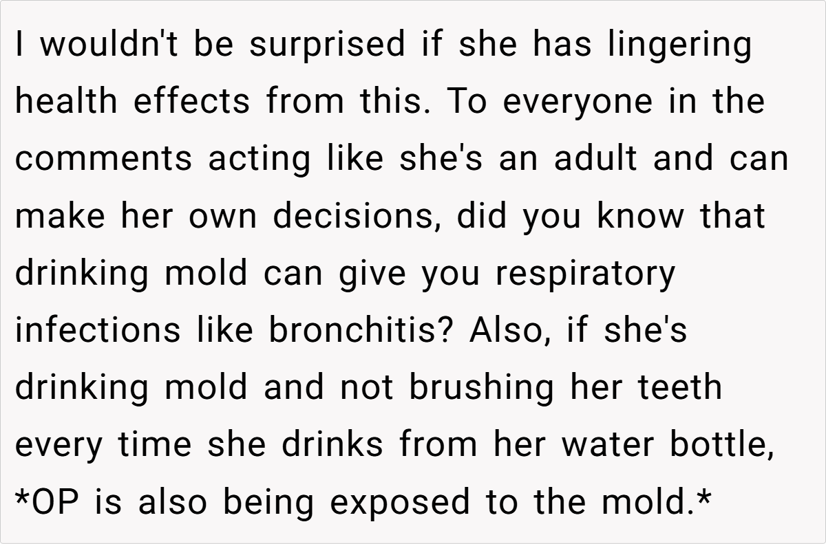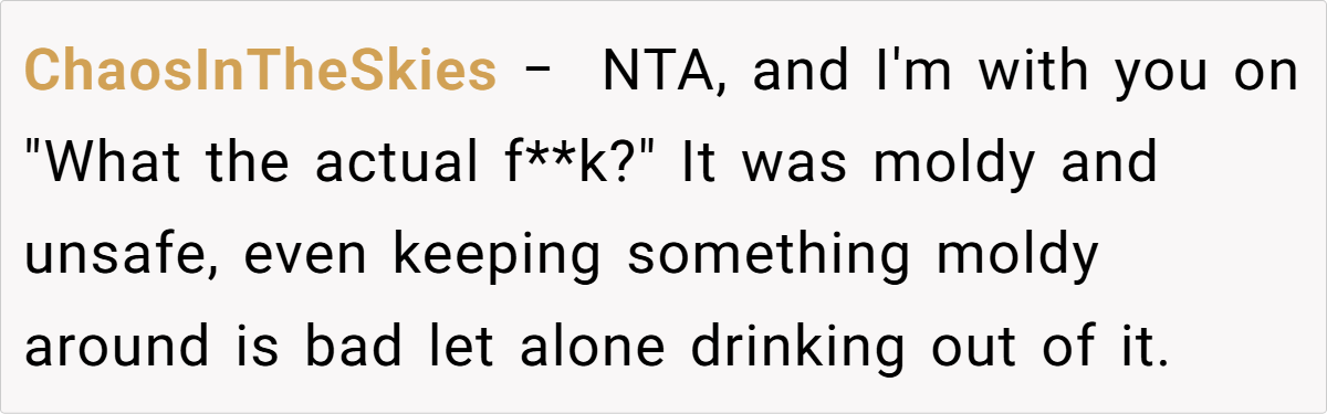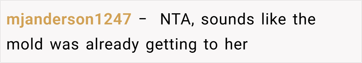 - Team Health: “NTA. Mold is dangerous. He tried reasoning—she left him no choice.”