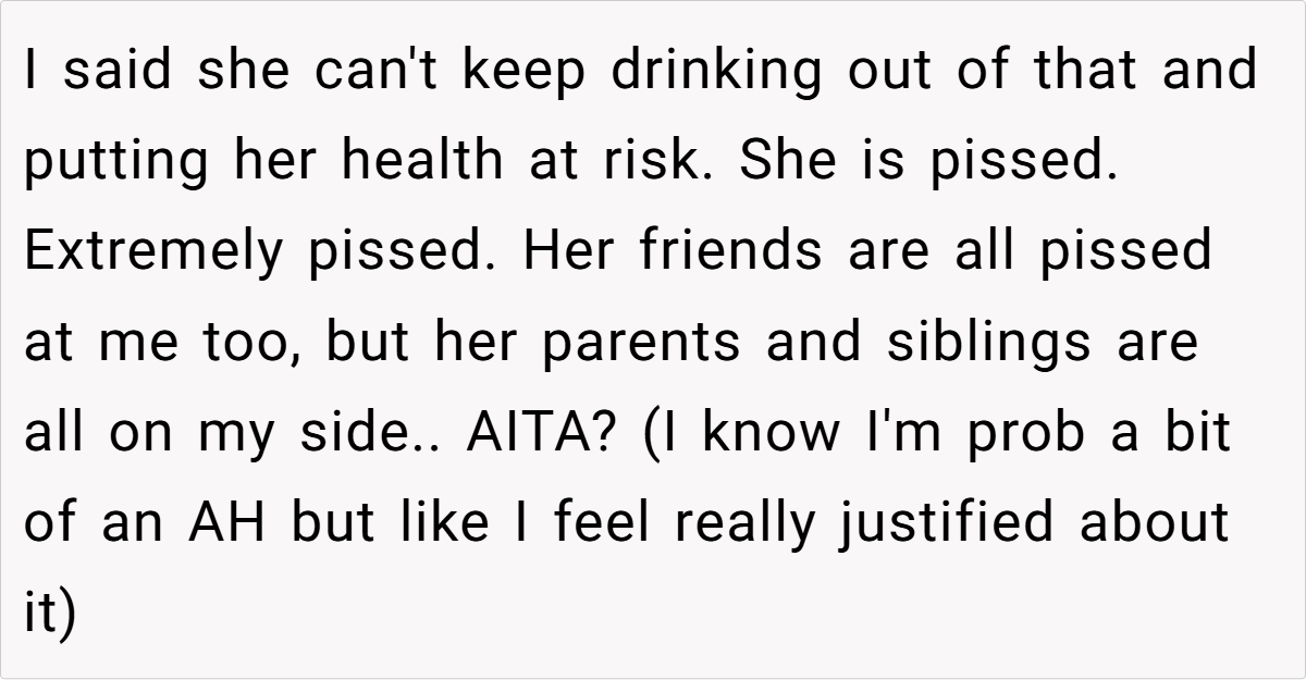 This conflict encapsulates the tightrope between love and control. While the boyfriend’s actions stemmed from genuine concern, his execution overlooked the emotional weight of the bottle. Relationships thrive on mutual respect—even when one partner’s habits raise alarms. Was his choice justified, or should he have navigated this differently? Share your take: Does health trump sentiment, or is there always a middle path?