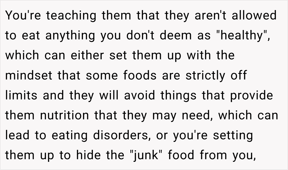 In this case, the parent’s decision to eliminate junk food from the household is grounded in both personal history and expert advice. Having experienced the adverse effects of poor dietary choices firsthand, the parent understands that protecting children from these risks is paramount.