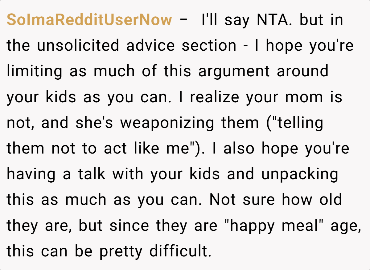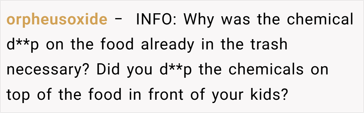 While some express concern over the extreme method—disposing of the meals and using cleaning products—the consensus is that protecting the children’s health must come first. A few voices also caution against letting the situation escalate to further family estrangement, suggesting that professional counseling might help resolve the underlying issues.