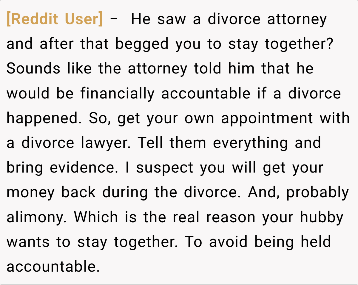 This insight captures the core issue: unchecked financial behavior not only disrupts the couple’s shared goals but also sets the stage for future exploitation. Financial experts agree that maintaining transparency in the management of joint funds is essential. When one partner unilaterally makes spending decisions without mutual agreement, the resulting imbalance can lead to significant disputes during separation or divorce proceedings.