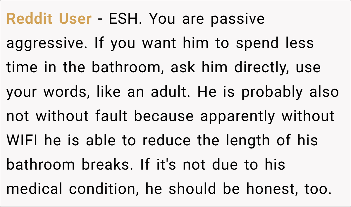 ‘AITA for turning off the wifi when my husband camps in the bathroom for extended lengths of time?’