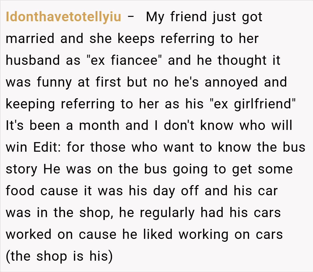 Many redditors point out that if you’re secure in your marriage, you shouldn’t worry about what others say. “If your wife loves you as she does, it’s just a title. Focus on the relationship rather than labels,” one commenter noted.