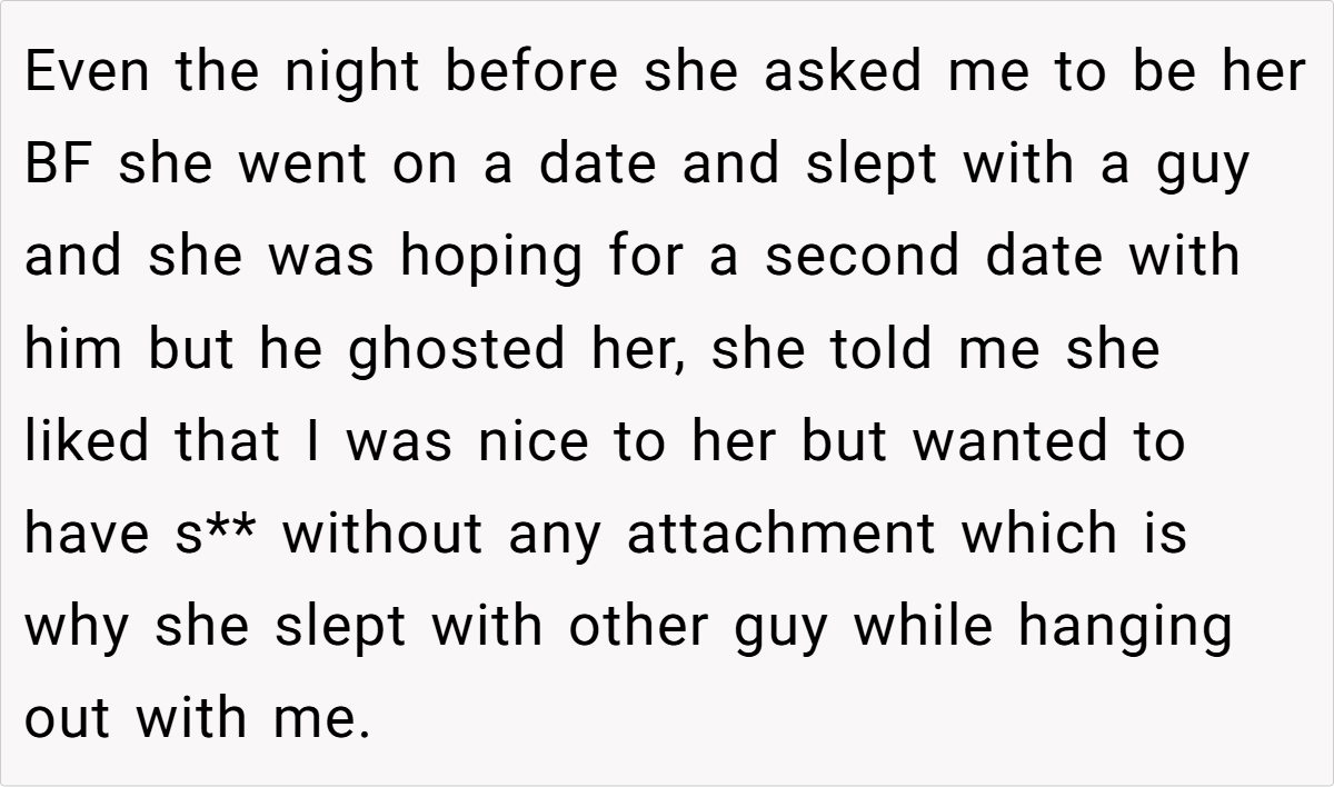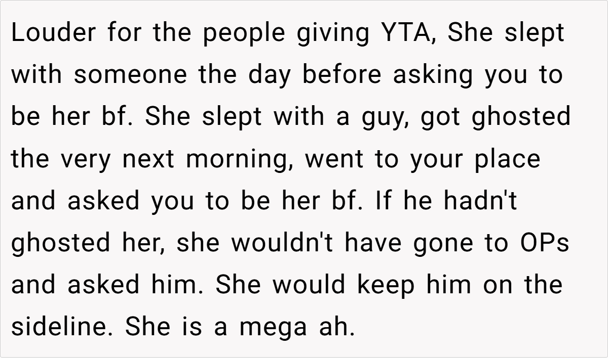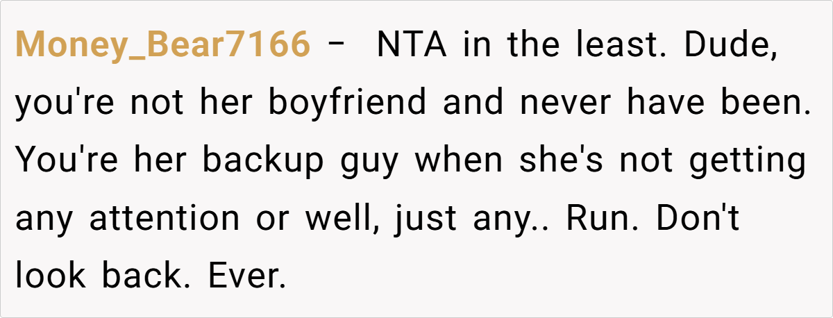 NTA. Dumb for actually agreeing to be her boyfriend after she ghosted you. She is manipulating you and using you. There is no doubt she is still sleeping with other people. My dude, you are the back up. You should only ever be someone’s first choice. That goes for women as well, but she does not respect herself. Save a life of pain and tell her to kick rocks.