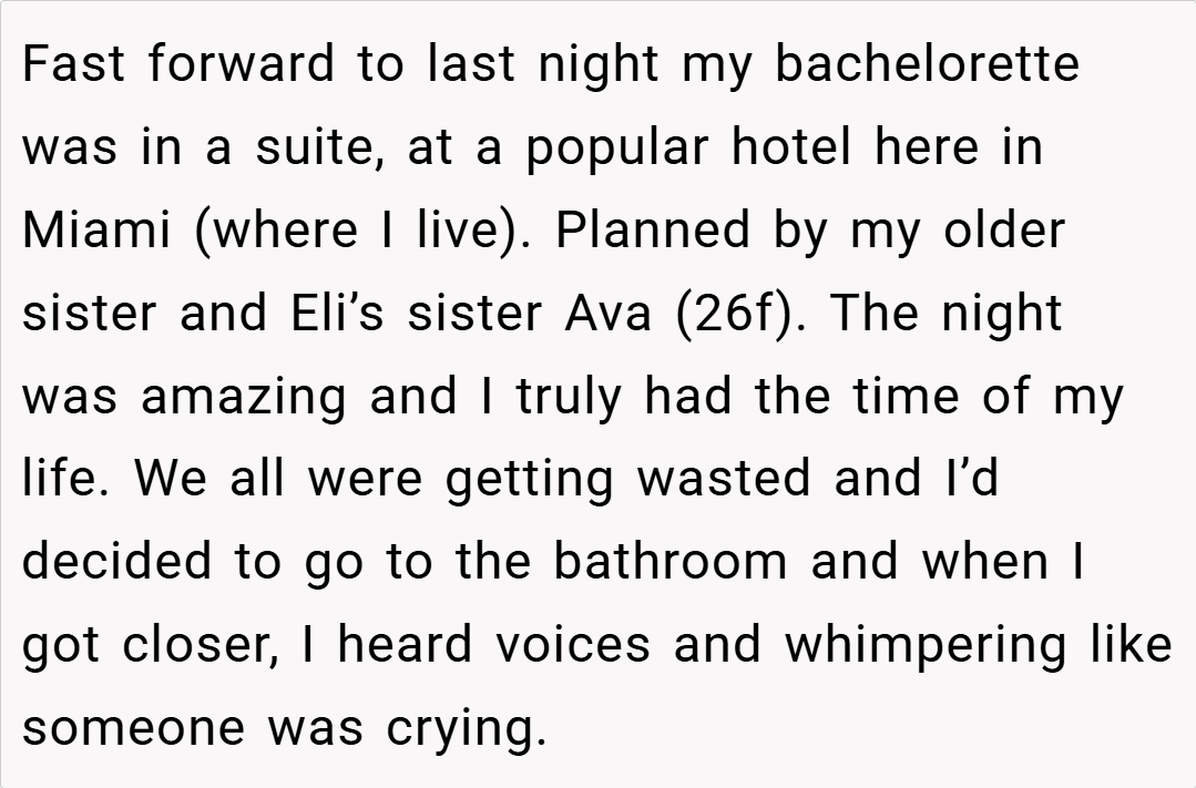 At my bachelorette party, held at a Miami hotel suite, I was shocked to overhear Kami, my fiancé’s childhood best friend, drunkenly confessing her love for him. Having known Kami for years, and with her once being in a relationship with his best friend Antonio, I found her declaration both hurtful and disruptive.