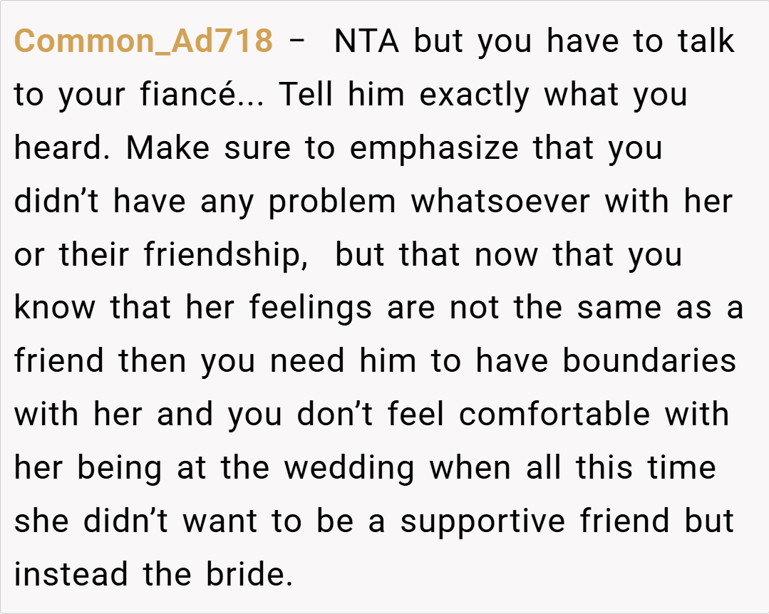 ‘ AITA for wanting to disinvite my fiancés childhood girl ‘best friend’ from attending our wedding for drunkenly confessing her love for him at my bachelorette party?’