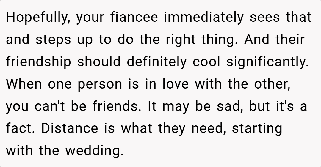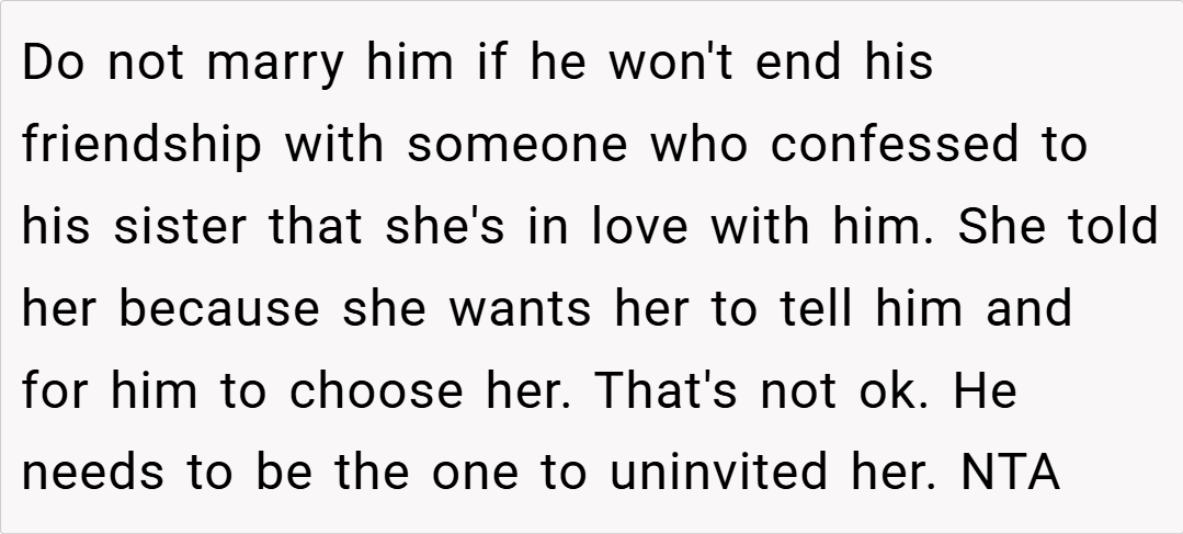 Ultimately, your decision to disinvite your fiancé’s childhood best friend from your wedding reflects a need to protect your emotional well-being and the sanctity of your upcoming celebration.