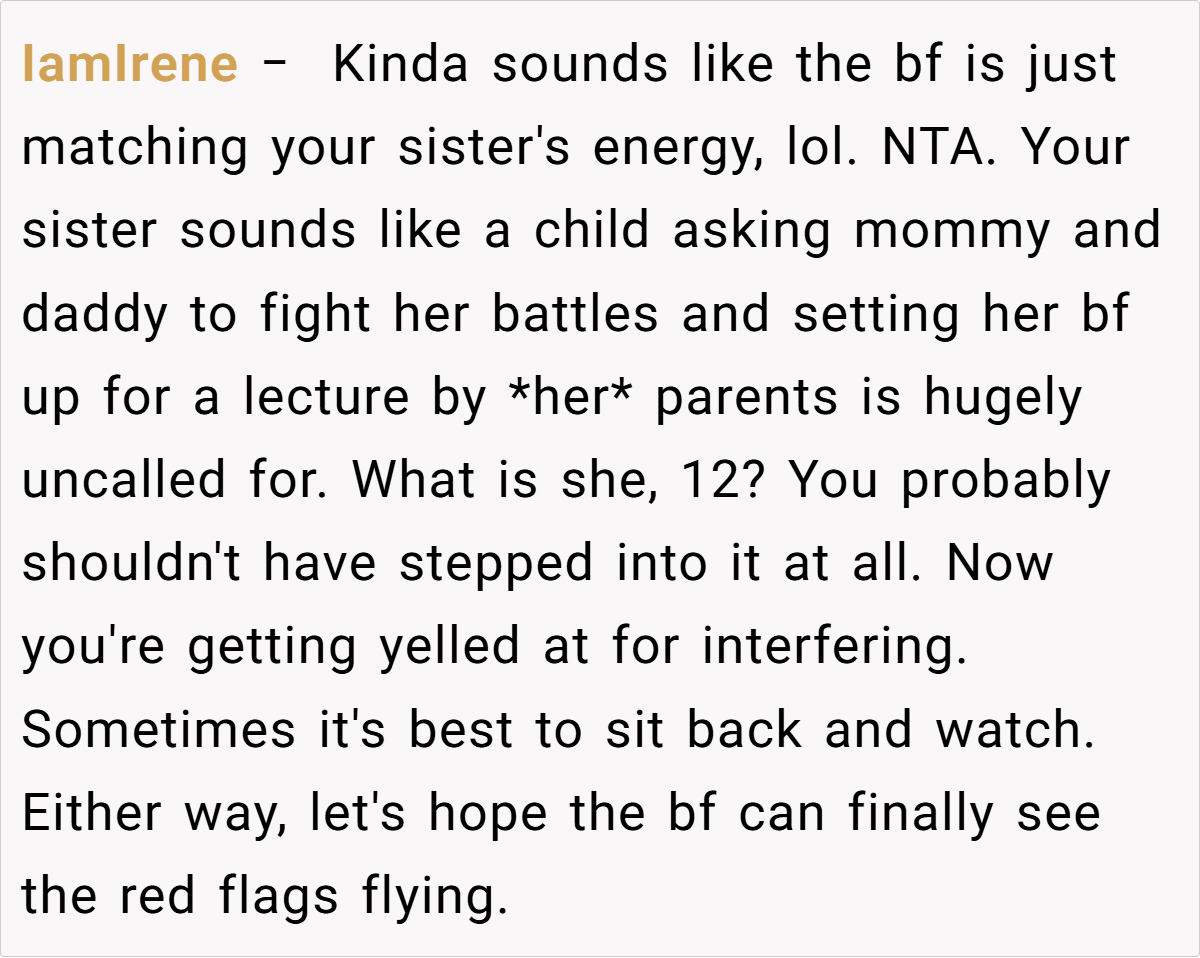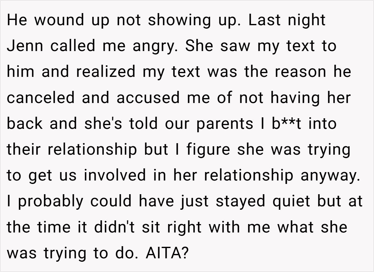 ‘AITA for warning my sister’s boyfriend she wanted our parents to confront him at dinner?’