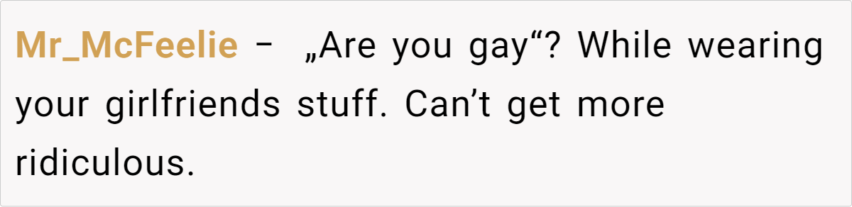 In this scenario, the father’s reaction—assuming the son must be gay—reflects outmoded gender stereotypes. Dr. Justin Lehmiller, a researcher at The Kinsey Institute, explains that “clothing doesn’t define one’s sexual orientation any more than a favorite color would.” Associating certain garments (like a crop top or low-rise jeans) exclusively with one gender can perpetuate rigid norms that overlook personal preference and comfort.