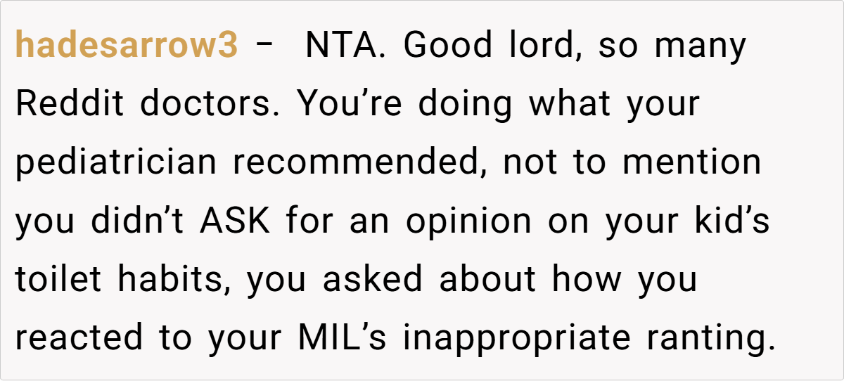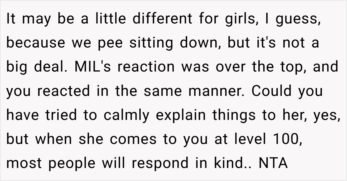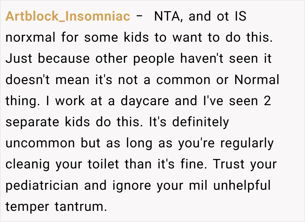 While opinions vary widely, many commenters empathize with the OP, arguing that defending one’s child against unwarranted criticism is both natural and necessary. Others jest about the absurdity of over-analyzing a normal developmental phase, and a few even poke fun at the idea of “toilet manners” being a marker of cleanliness. The diversity of viewpoints highlights how online communities can provide both solidarity and comic relief in challenging parenting moments.