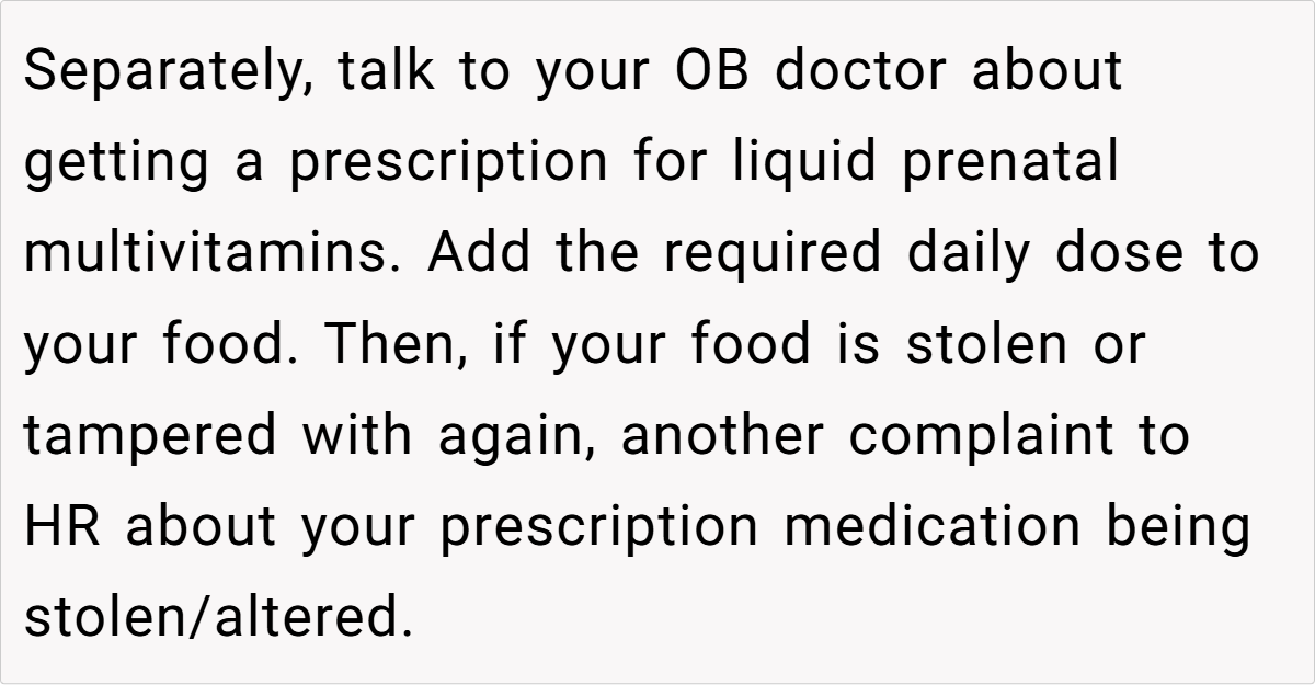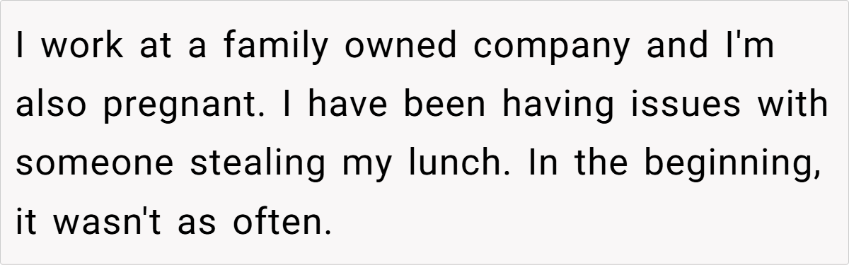 Office lunch theft is an ongoing problem, but what happens when a hungry, pregnant employee fights back? One Redditor found herself in trouble after setting up a spicy decoy meal to catch a repeat food thief—who turned out to be her manager.