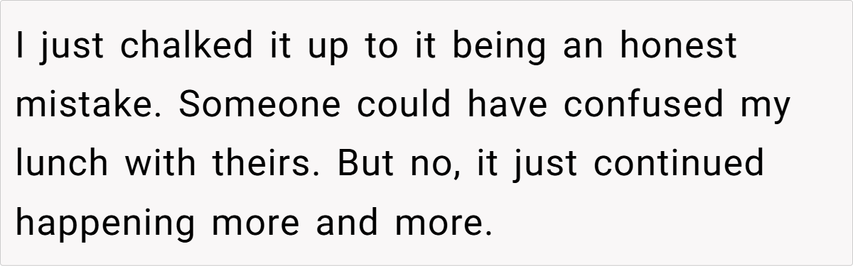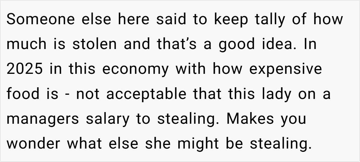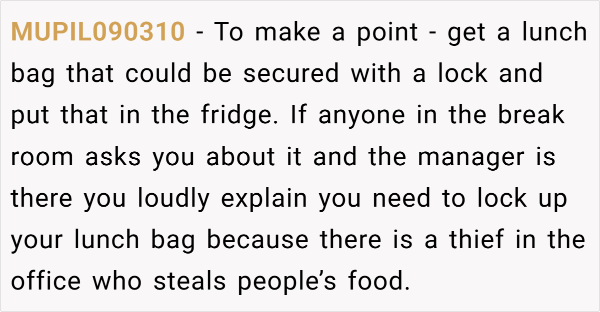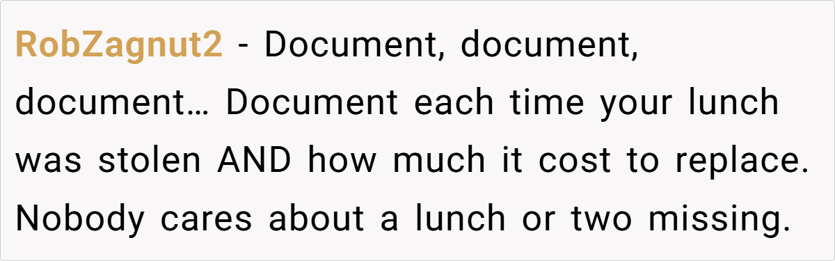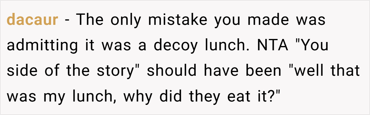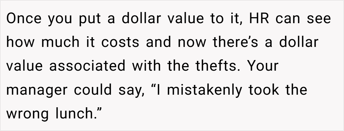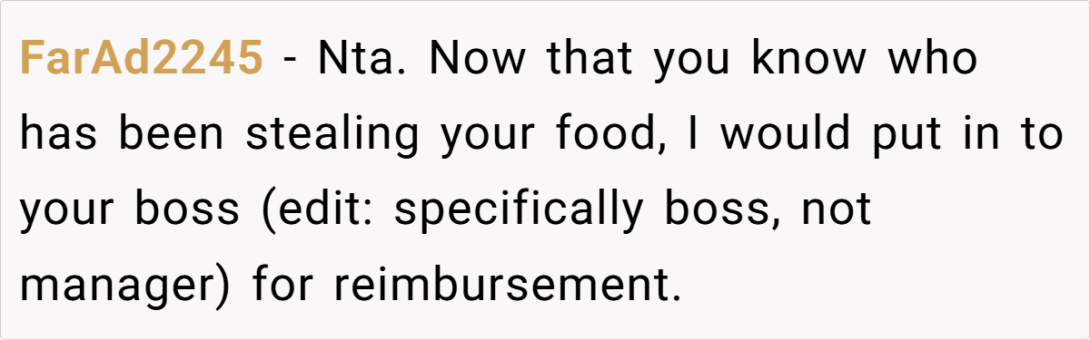 Workplace conflict expert Dr. Amanda White explains, “Food theft in professional settings creates an environment of distrust. When management is the culprit, it further undermines company morale.”