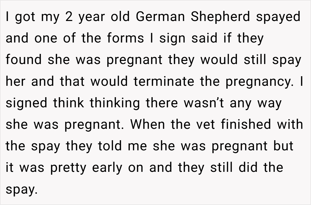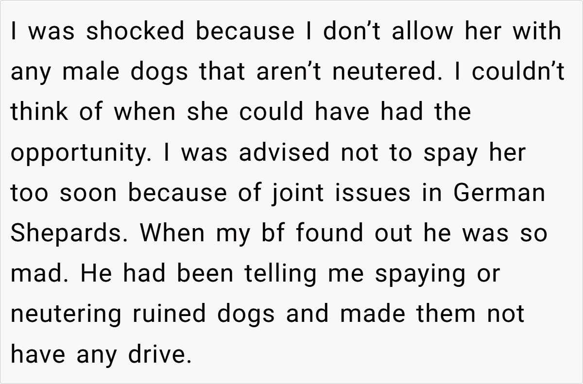 In the world of pet care and relationships, trust and clear communication are paramount. One woman’s story takes a startling turn when a routine spay procedure for her 2-year-old German Shepherd reveals an unexpected pregnancy—and a betrayal that cuts deep. Having always been meticulous about her dog’s exposure to unneutered males, she never imagined that her own boyfriend would undermine her explicit wishes. The shock of learning that he secretly arranged a mating, all while she intended to spay, has left her reeling.