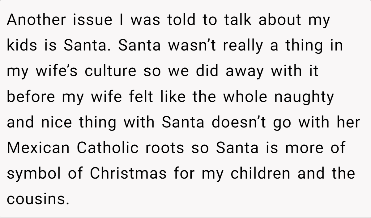The situation escalated as the user was also asked to enforce Santa and Elf on the Shelf beliefs, clashing with their children’s understanding of Christmas. Read the full story below for the details.