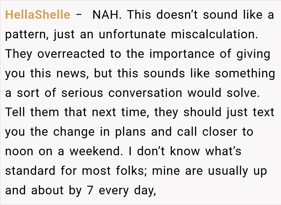 However, not everyone saw the situation in black and white. A thoughtful response suggested, “This doesn’t sound like a pattern, just an unfortunate miscalculation. They overreacted to the importance of giving you this news, but this sounds like something a sort of serious conversation would solve.”