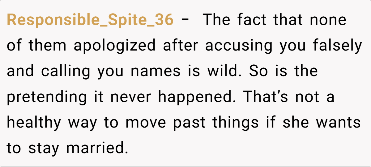 Commenters note that the incident seems less about any real misconduct and more about deep-seated trust issues and unresolved family conflicts. In short, the overwhelming sentiment is that he deserves respect and trust, and that the hurtful language and false accusations were completely uncalled for.