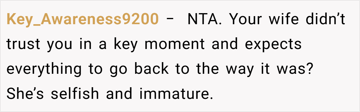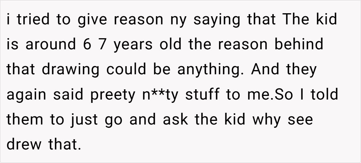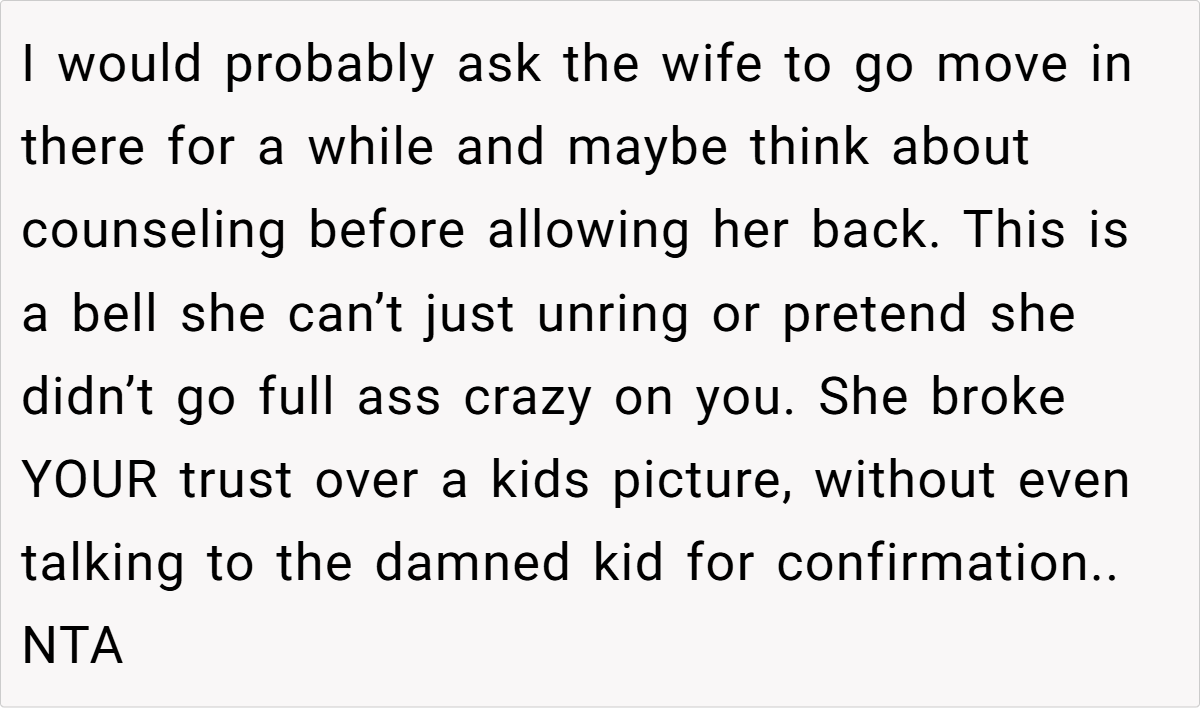 Across Reddit, most commenters firmly side with the husband. Many express that a six- or seven-year-old’s drawing should never serve as proof of infidelity. The community criticizes the extreme reaction from the wife and her family—accusing him without giving him a chance to explain is seen as both unfair and immature.