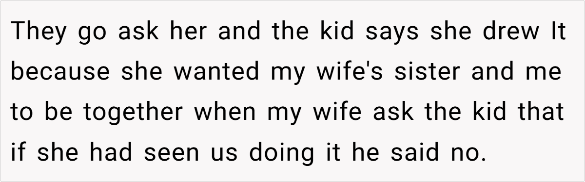 Furthermore, some experts emphasize that family dynamics—especially involving extended family—can sometimes distort our perception of events. The drawing, innocent in its creation, became weaponized due to a history of unresolved issues with the wife’s sister. In healthy relationships, even bizarre misunderstandings can be navigated through empathy and reassurance rather than assumptions and harsh words.