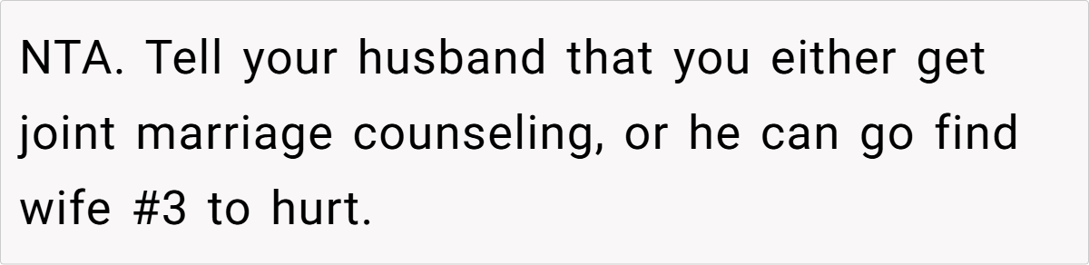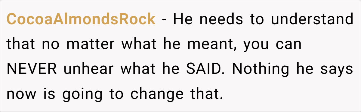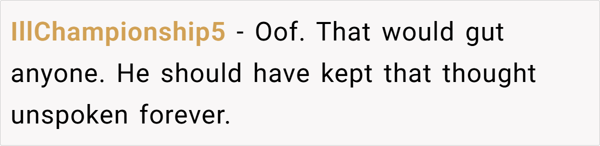 Reddit commenters express strong disapproval of the husband’s remark. Many deem it insensitive and deeply hurtful, citing the importance of addressing unresolved grief privately rather than in public. Some advocate for counseling, while others emphasize that such comments undermine the trust and respect essential to a healthy marriage.