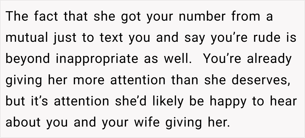 According to relationship expert Dr. John Gottman, “The key to sustaining a relationship is not in the absence of conflict, but in the ability to manage it with respect and clear boundaries.” This insight underscores the importance of handling unexpected encounters with calm and clarity. By keeping his response brief and matter-of-fact, the OP demonstrated that his current relationship is his priority. Such an approach not only preserves the harmony of the present but also reinforces the need to leave the past where it belongs. (Learn more at Gottman Institute)