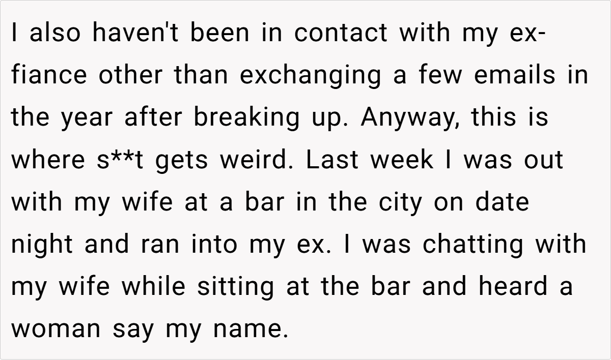 Life has a way of surprising us when we least expect it—sometimes with unexpected reminders from our past. On what was meant to be an ordinary date night, a chance encounter with an ex-fiancée sent shockwaves through a well-established relationship. The OP, a 44-year-old man, found himself caught off guard when his former partner, responsible for a painful breakup years ago, reappeared unexpectedly at a bar. This sudden reunion stirred up old wounds and forced him to confront unresolved emotions from a time marred by betrayal.