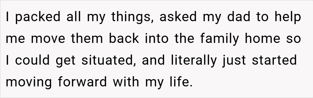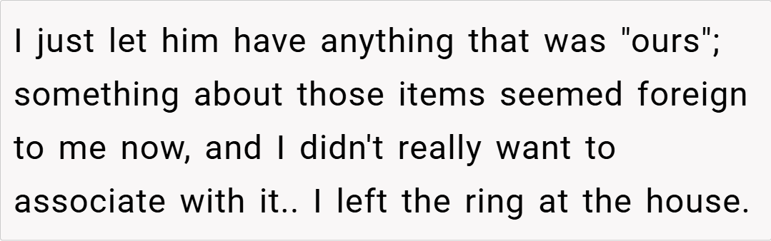 The shock and hurt were so overwhelming that, after hours of crying and reflection while he was on a work trip, she resolved to move on without giving him another chance. Packing her belongings and asking her father for help, she began to untangle their lives, leaving behind even the physical symbols of their shared past.