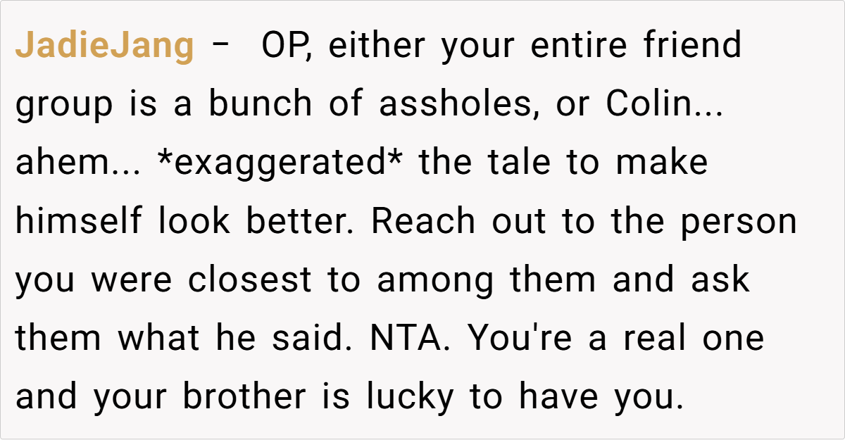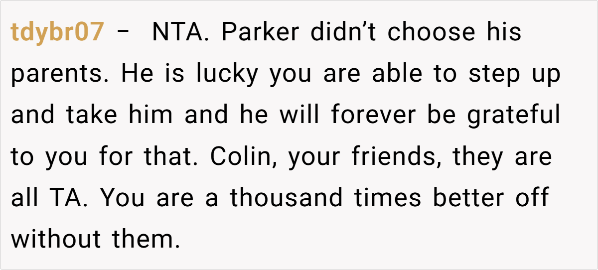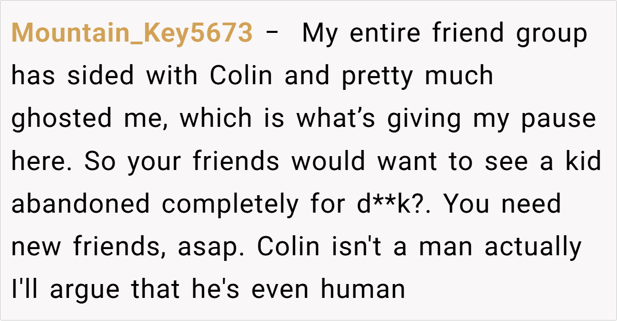 Broadly speaking, the community agrees that setting clear boundaries is not an overreaction but a necessary act of self-care and family protection. Even though some friends have sided with Colin, most commenters recognize that when a partner’s core values differ so starkly regarding the care of children, the decision to break up is justified.