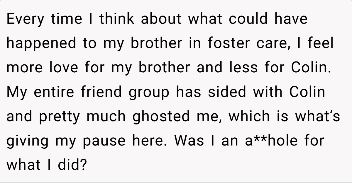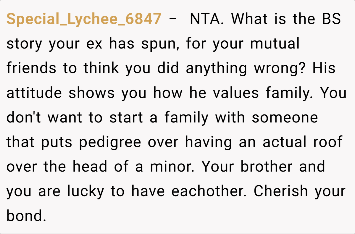 Ultimately, this isn’t about being stingy or heartless—it’s about protecting the only family you truly have. When your half‑brother’s well‑being is at stake, and your partner openly chooses to leave him to a system that you believe would do him disservice, you’re left with no alternative but to stand by your principles.