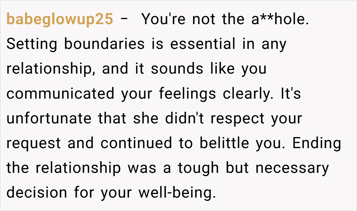 Ultimately, setting and enforcing personal boundaries is not about controlling a partner; it’s about maintaining one’s dignity. The OP’s decision to end the relationship, though painful—especially with an upcoming birthday looming—was a necessary step toward protecting his self-worth. His experience is a reminder that no one should have to tolerate behavior that diminishes who they are, and that prioritizing emotional health is a courageous act in the face of persistent disrespect.